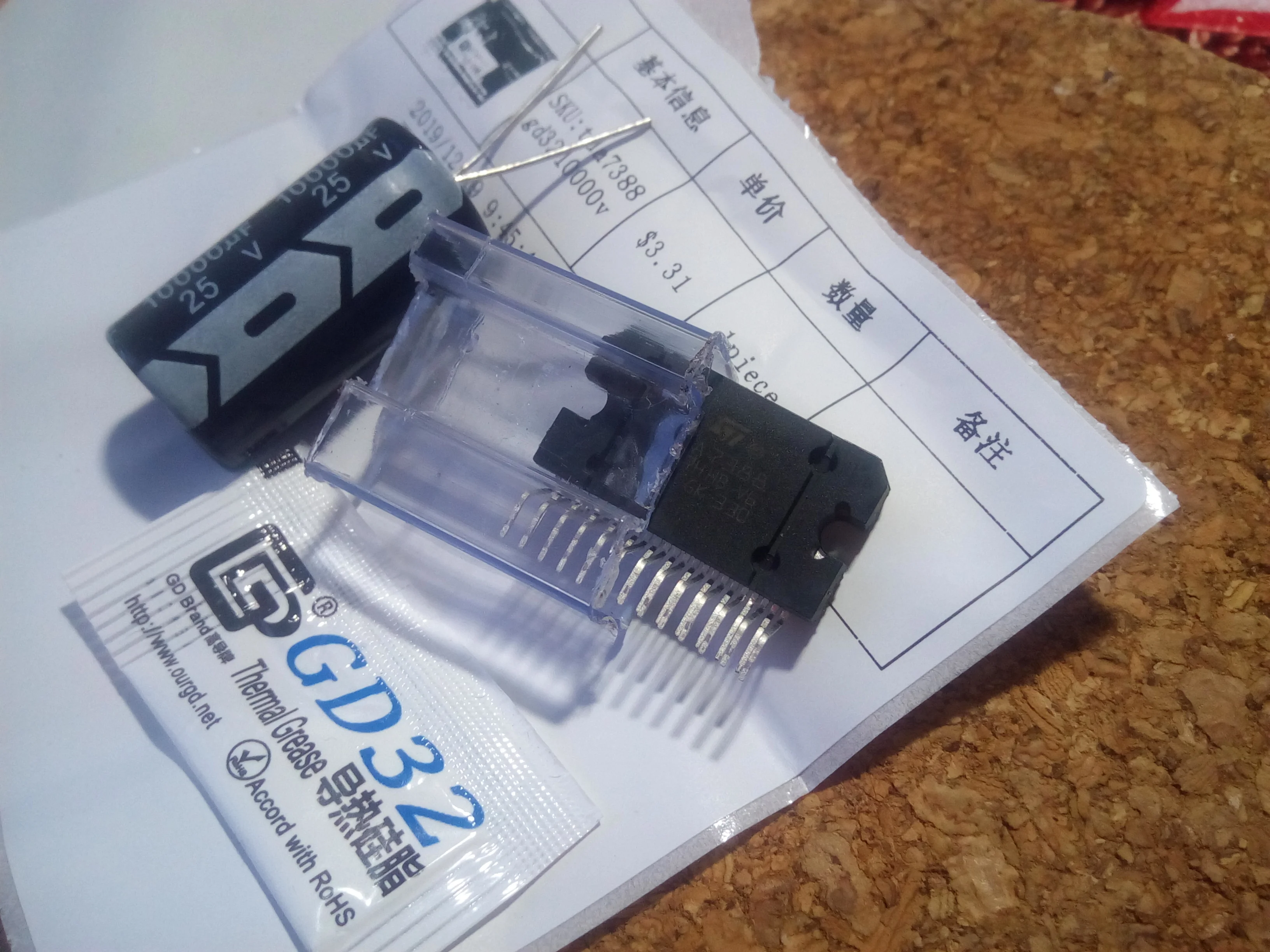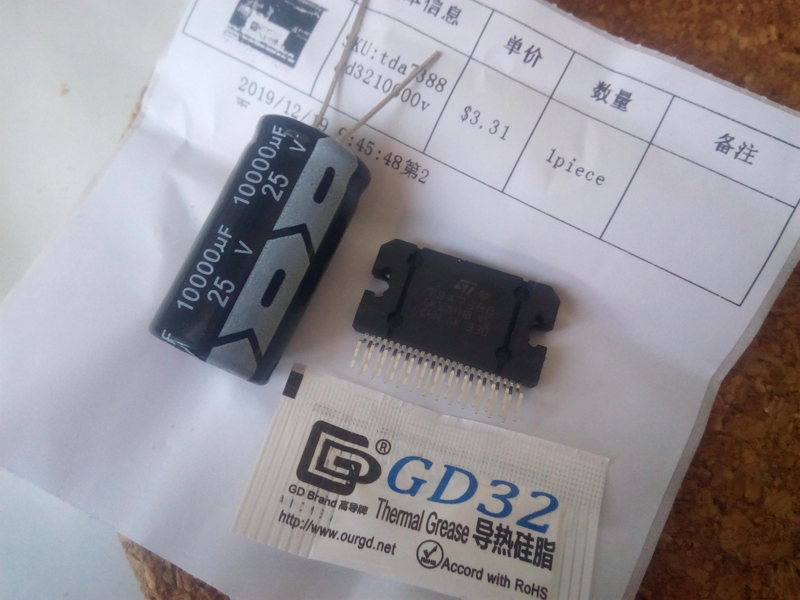 Module d'amplificateur de voiture TDA7388 TDA 7388 zip25 + 1 condensateur 25V 10000UF + un sachet de graisse thermique = un ensemble neuf et ORIGINAL