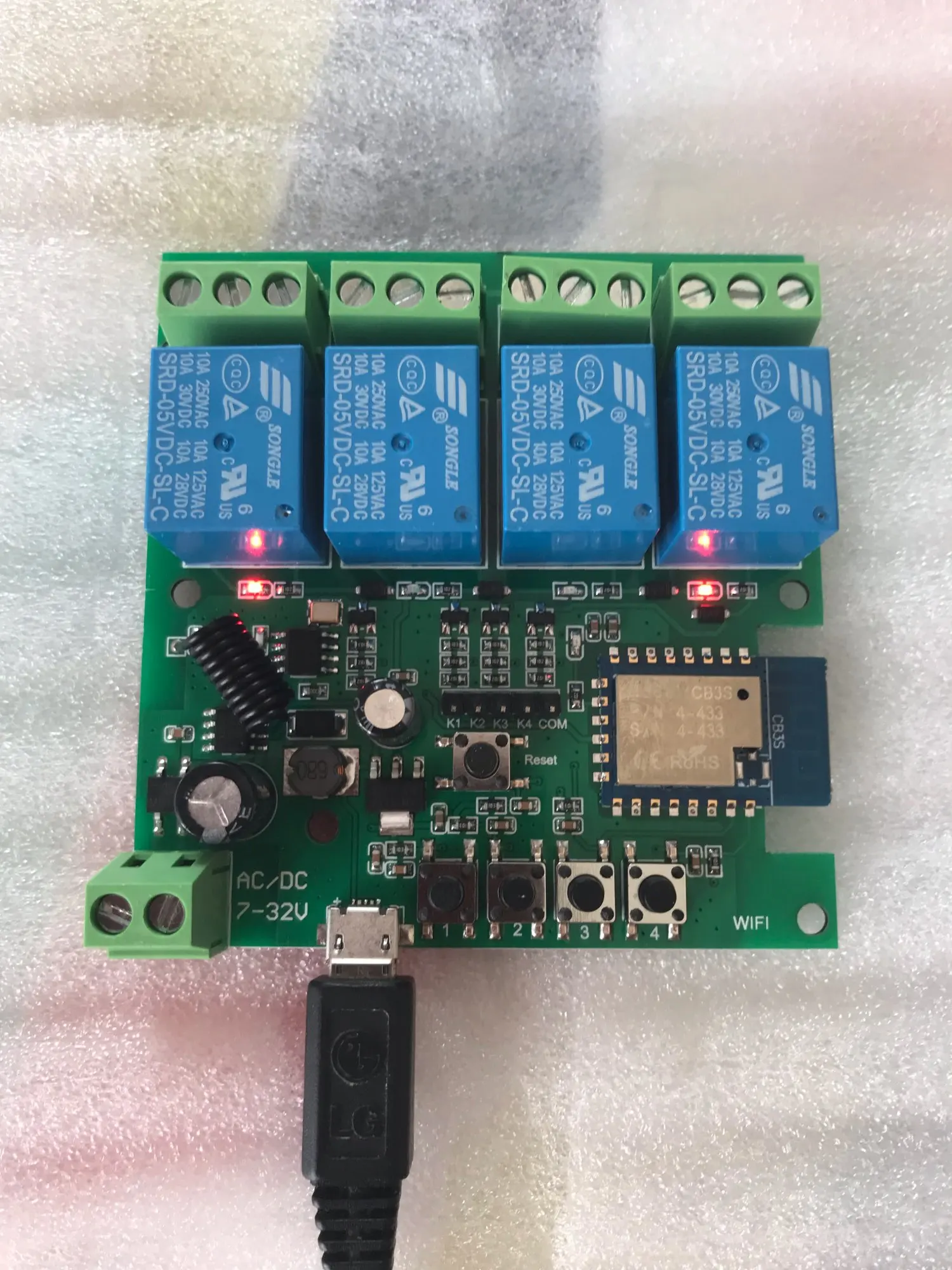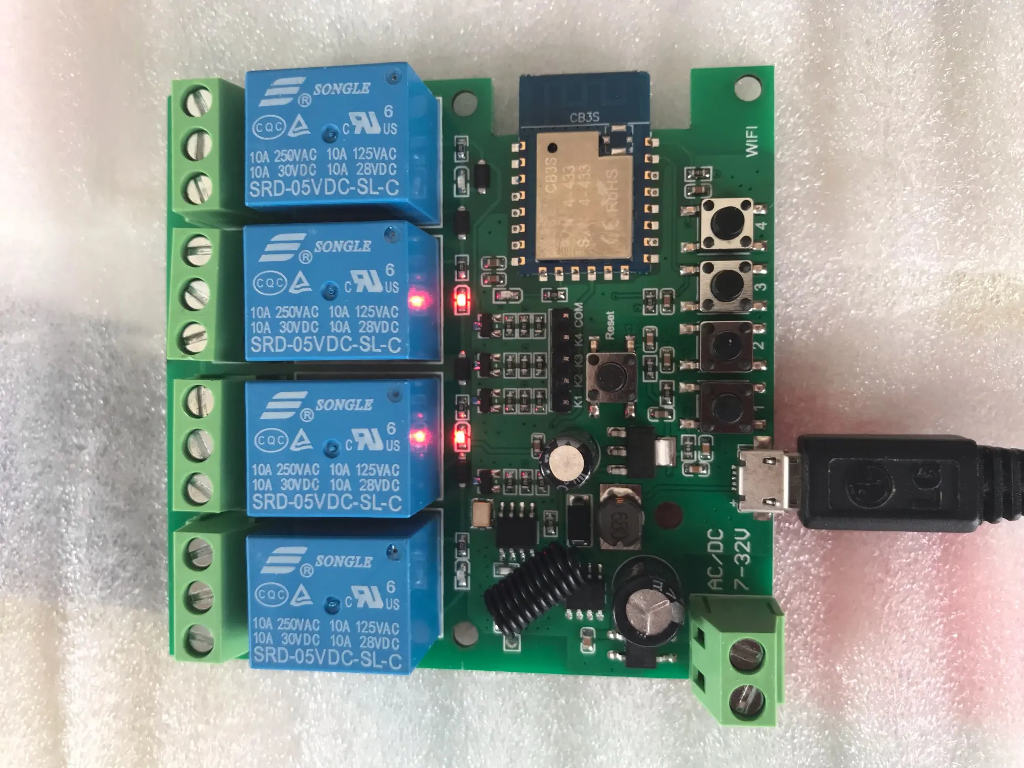 Module de relais Wifi sans fil USB 5V DC 7-32V, 1/2/4 canaux, 433MHZ, télécommande pour maison intelligente, contrôle avec application Tuya