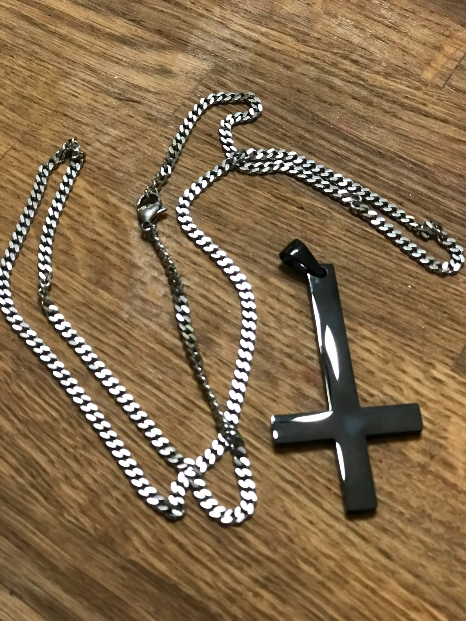 Modyle – collier noir avec pendentif en croix de St Peter inversé pour homme, en acier inoxydable, ras du cou, Crux de sanctuaire, pierre précieuse