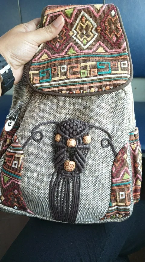 Motaora sac à dos fait main femmes Vintage toile sacs à dos Style National géométrique imprimé sac femme Simple voyage sac à dos