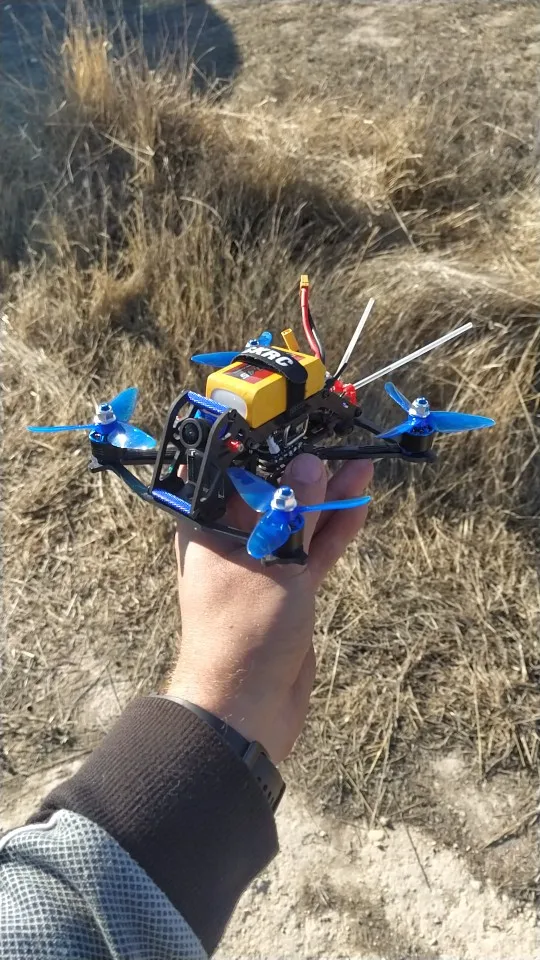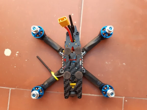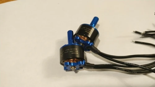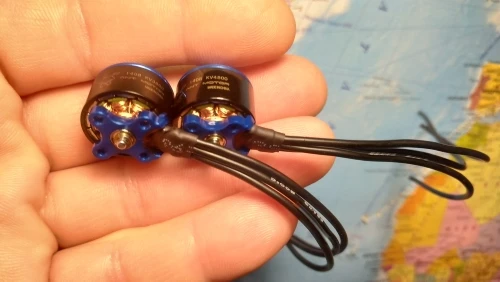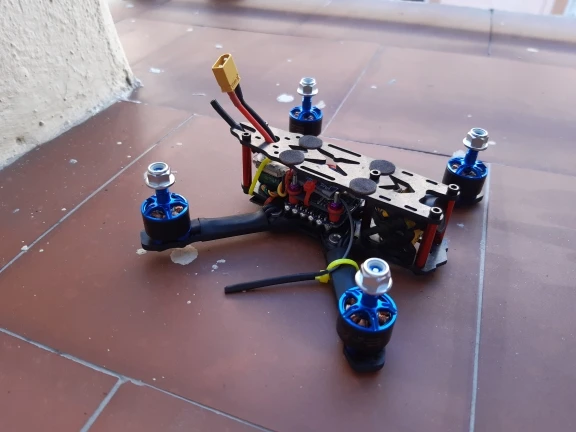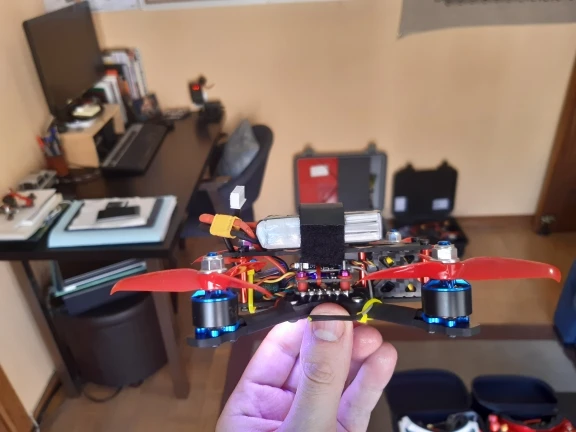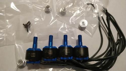 Moteurs performants en 4S et hélices 3x5x3. Malheureusement après une chute du drone, un des moteurs est hors-service. Support de fixation plié et axe faussé. Dommage.