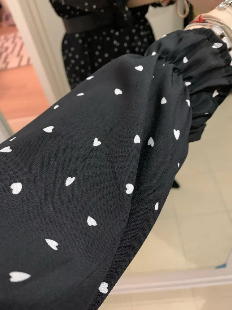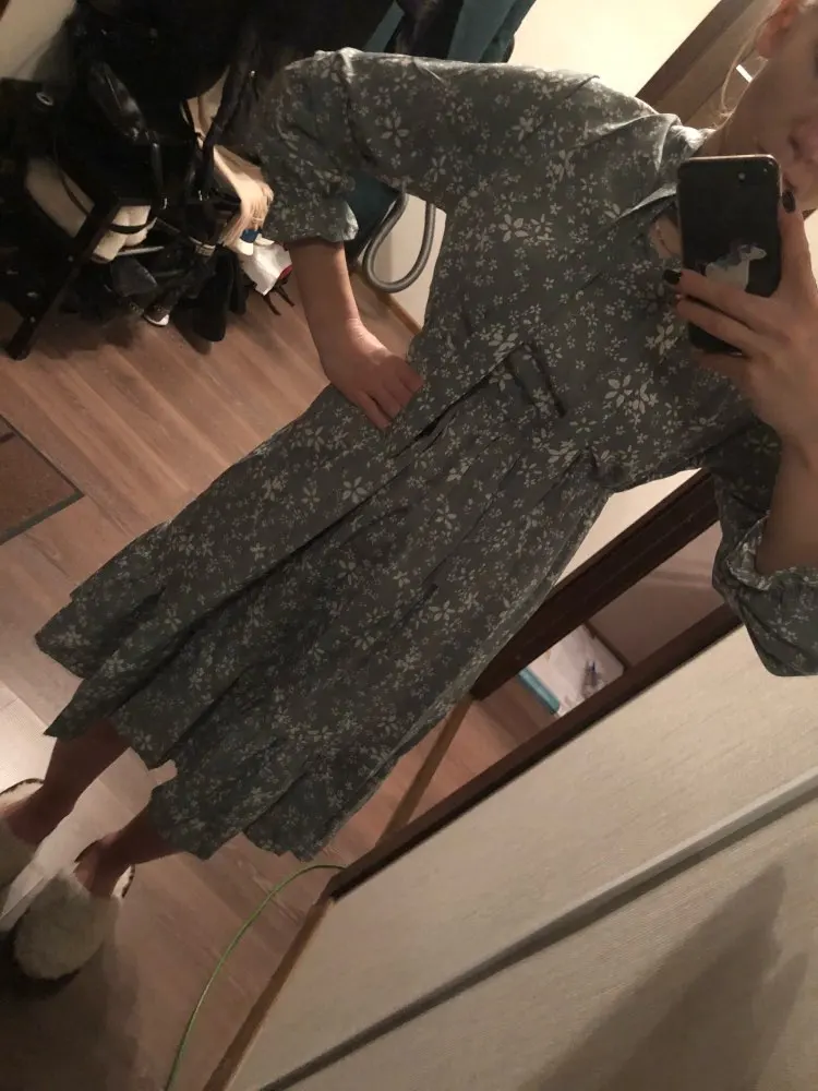 Mousseline de soie taille haute élastique printemps été robe Bow a-ligne femmes à manches longues imprimé fleur robes de bohème florale mince Feminino