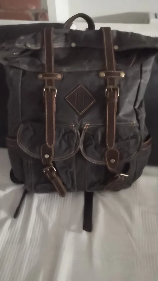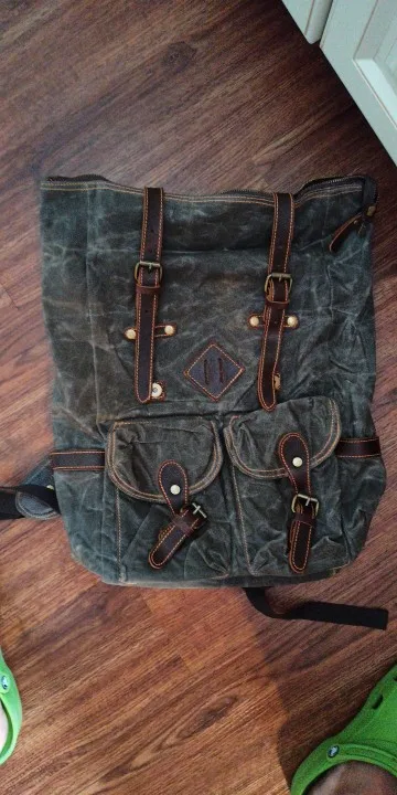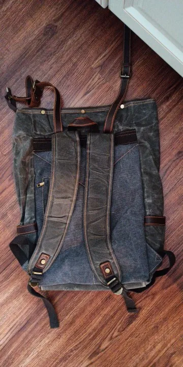 MUCHUAN – sac à dos en toile de cuir pour hommes, sacoche de jour pour ordinateur portable 15 ", étanche, grande poche de voyage cirée