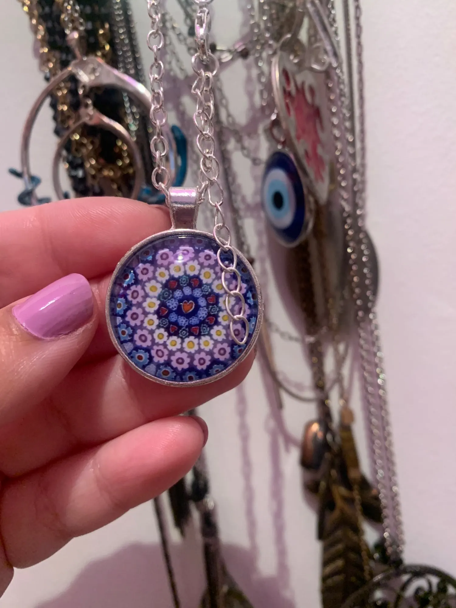 Murano Millefiori-collier pendentif en fleurs multicolores 25mm, Cabochon de verre, bijoux pour femmes et hommes, cadeau, vente en gros