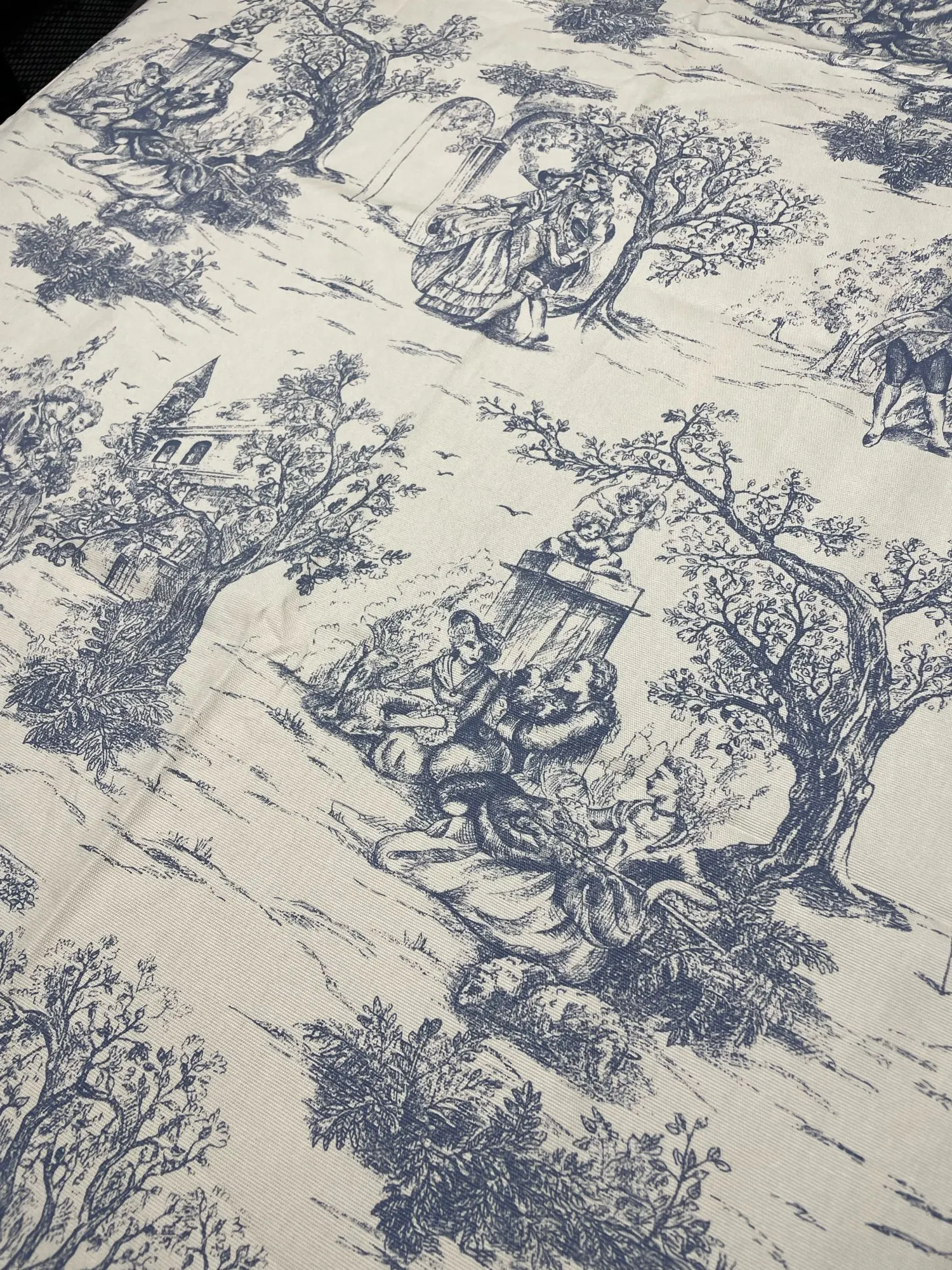 Nappe rectangulaire pour Table de cuisine française, Vintage, peinture à l'encre bleue, toile de pique-nique pour Photo