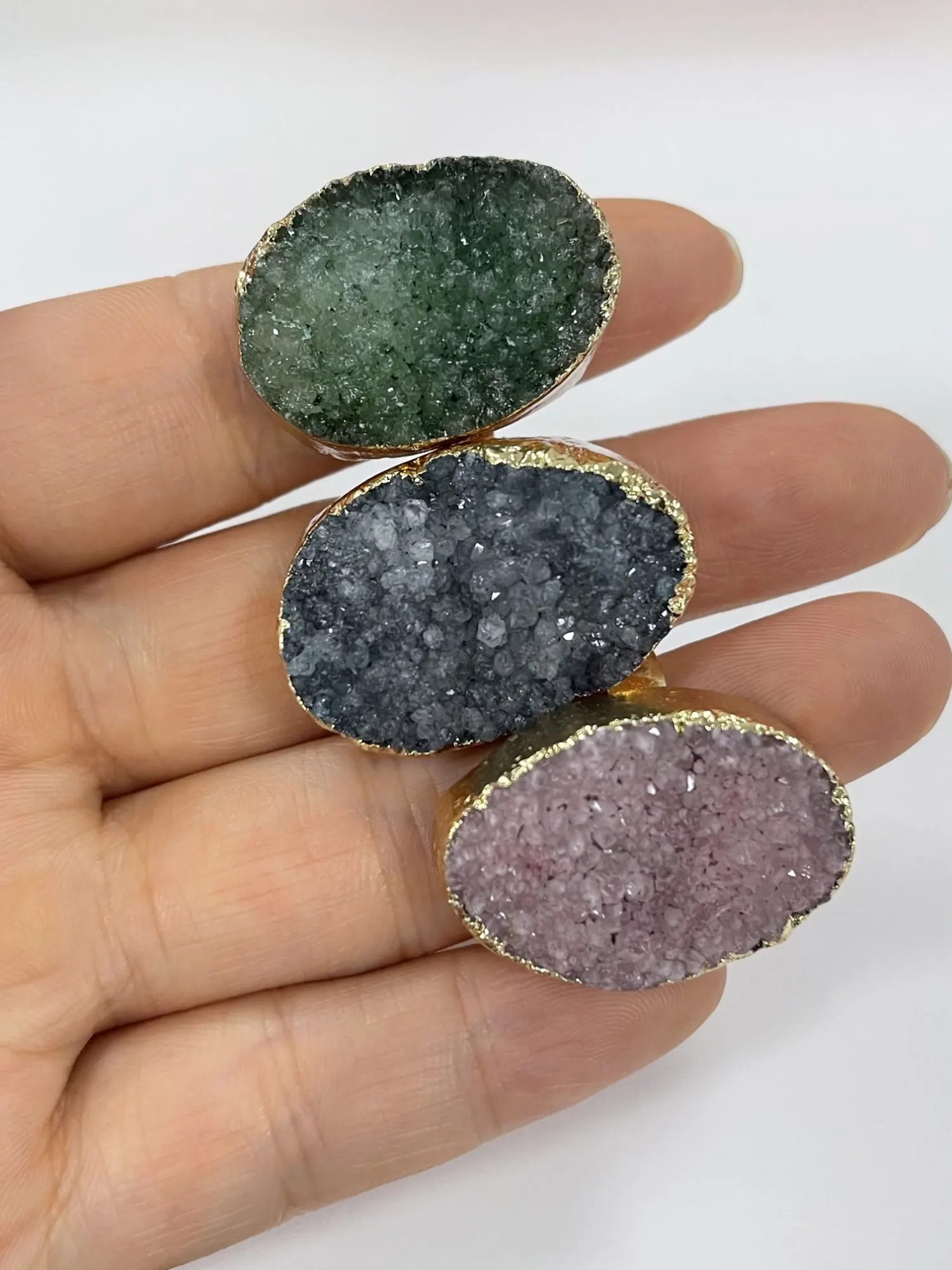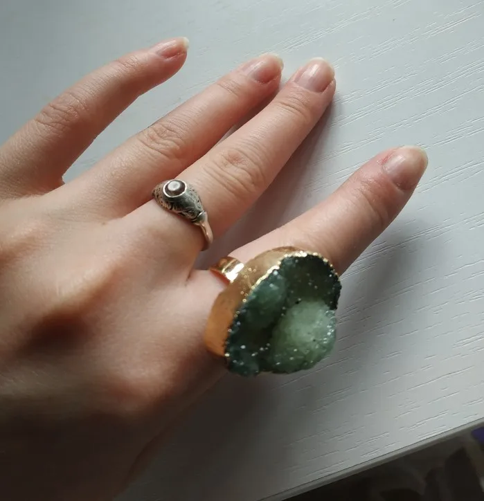 Natural Druzy Agates Rings Diamon-Studded Open Finger Rings Irregular Charm Rings for Women Men Party Wedding Jewelry