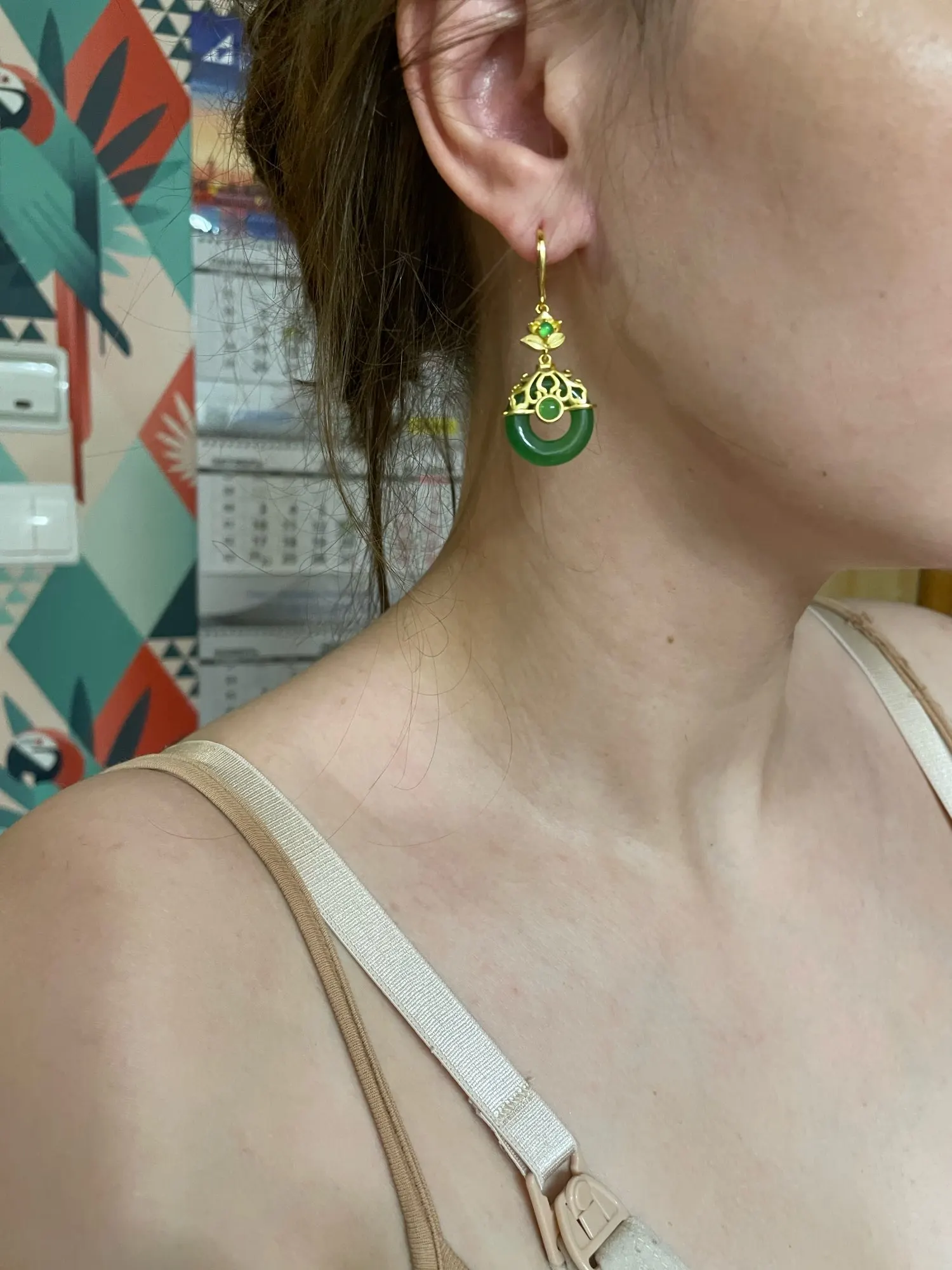 Naturel Hetian jade jaspe boucles d'oreilles chinois rétro cour style concepteur artisanat original charme femmes marque bijoux en argent
