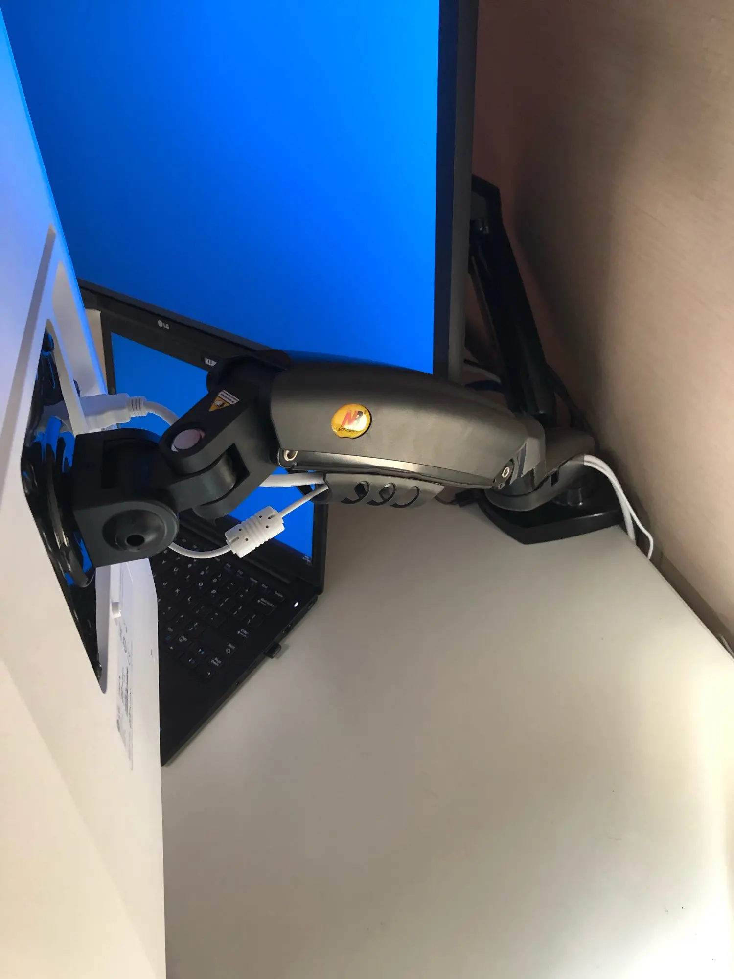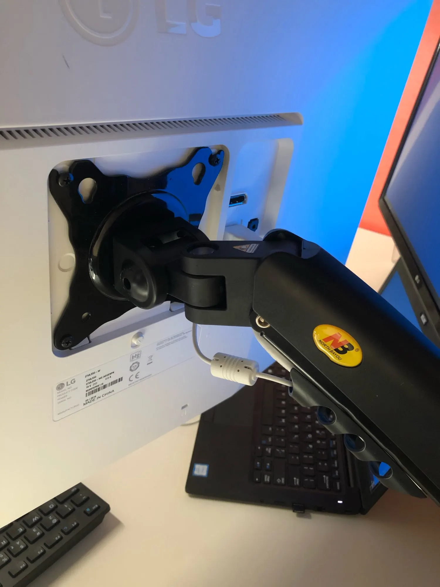 NB North Bayou-moniteur ergonomique à double mouvement, F160, bras réglable inclinable pivotant avec ressort à gaz pour deux écrans 17-27 "et 2-9KG