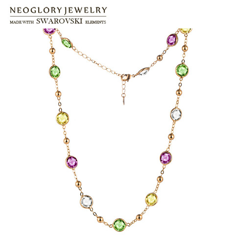 Neoglory cristal coloré perles rondes longue breloque collier classique deux utilisations robe fête embelli avec des cristaux de Swarovski