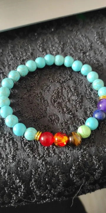 Le bracelet est arrivé rapidement, il est vraiment très joli. L élastique à l air épais , les pierres ont l air naturelles. Je suis très contente de cet achat