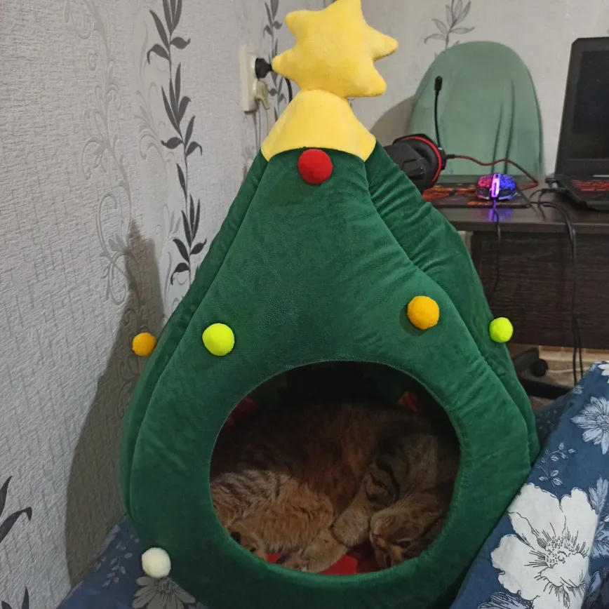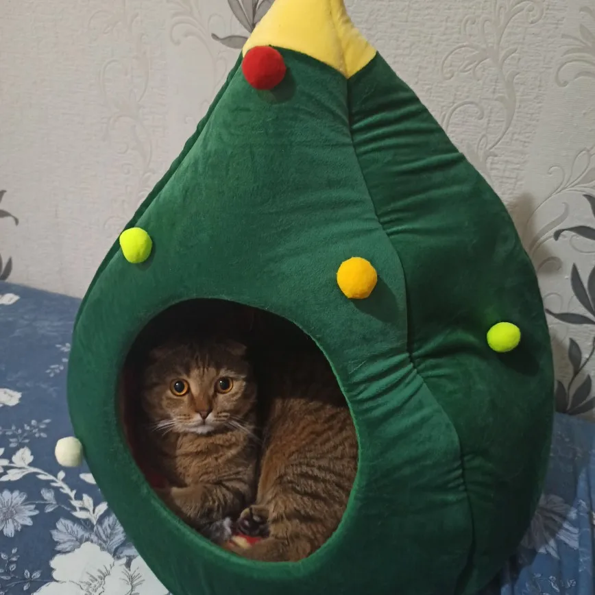 Niche pour animaux domestiques, nid en forme d'arbre de noël, pour chiens, chiots, tapis lavable, chaud et doux pour l'hiver, fournitures pour animaux domestiques