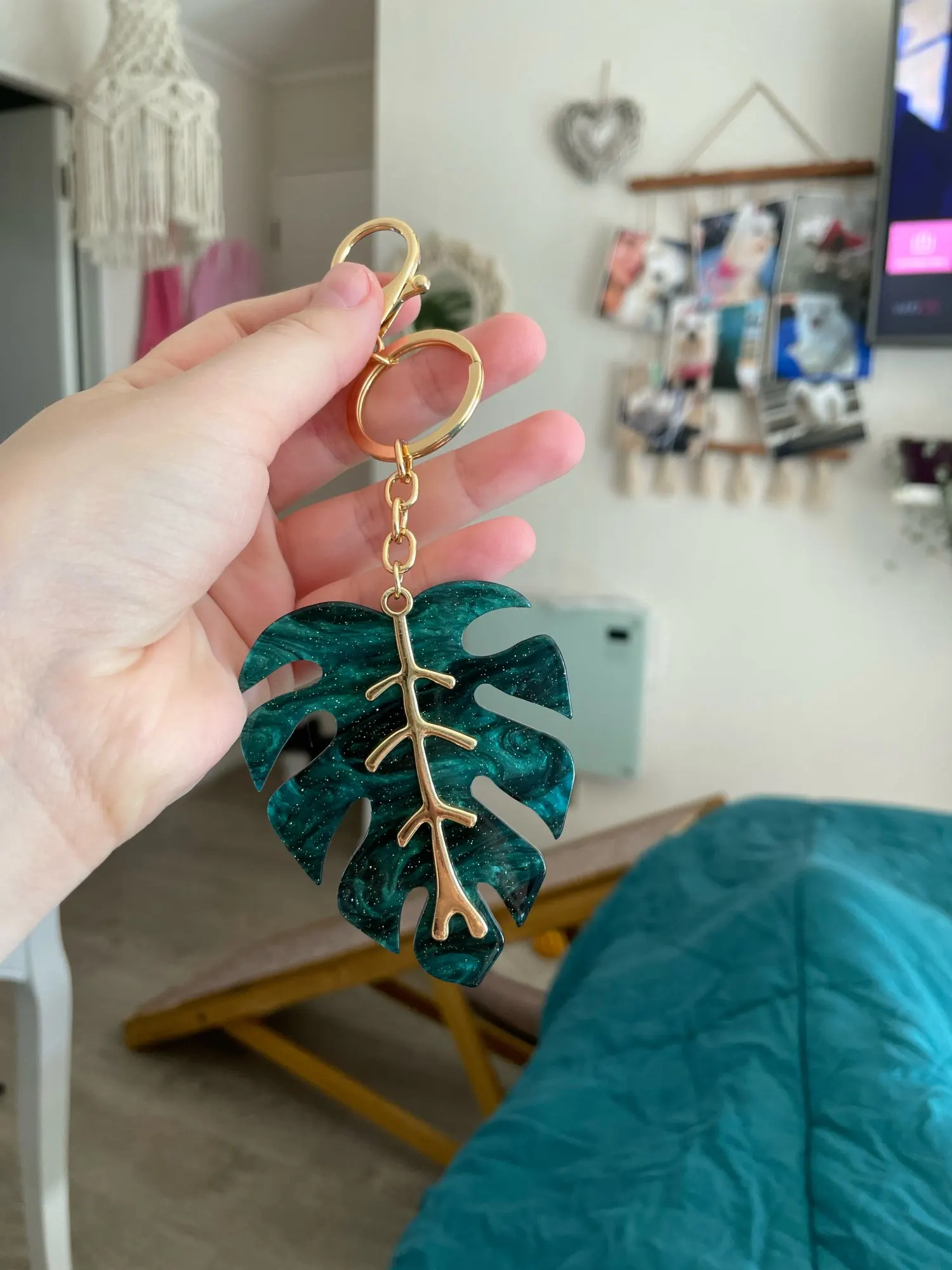 Noël vert feuille métal porte-clés beau et frais feuillage forme porte-clés Festival cadeau dames accessoires Airpods pendentif