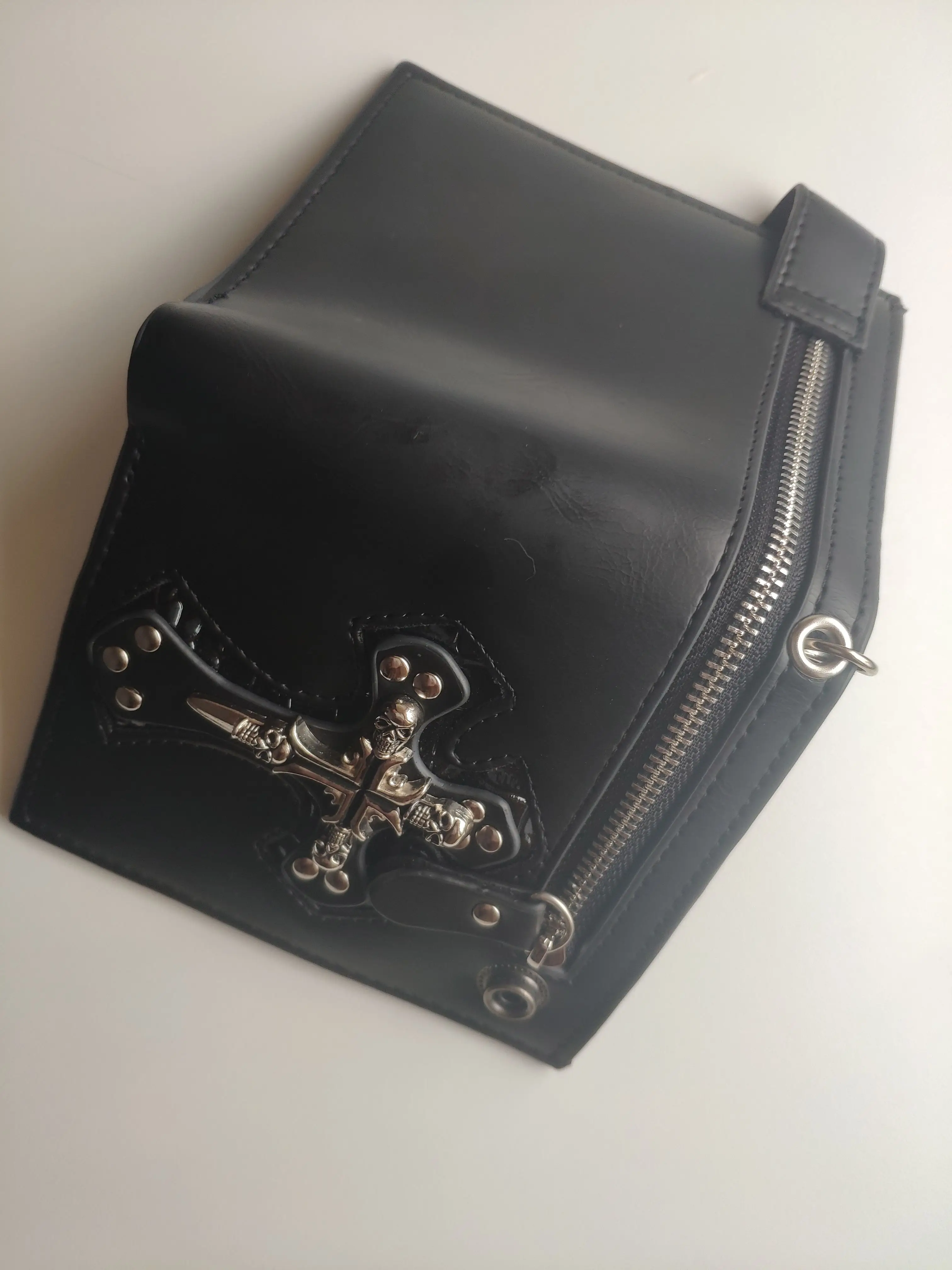 Norbinus – portefeuille en cuir à fermoir croisé pour hommes, avec chaîne de motard Antique, porte-monnaie noir, Punk Rock, crâne, porte-cartes, sac d'argent