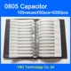 Le produit ne semble pas de qualité irréprochable : bandelettes coupées n'importe comment. Des étiquettes indiquent "muRata", j'ai un doute sur la marque réelle des SMD. Vous n'aurais pas 25 condensateurs par type, mais : 24, 25 ou même parfois 26. La raison est que la personne qui a fait la découpe n'a même pas été capable de se faire un gabarit de découpe pour faire ça proprement et mettre 25 condensateurs à chaque fois. Pour un prix aussi important, on peut s'attendre à mieux à mieux que du bricolage. Certains intercallaires sont imprimés avec une série "muRata 50V COG GRM2165C1H131JA01D" en C0805 mais avec une étiquette collée par dessus qui indique "muRata 10V" X7R GRM21BR61A475KA73L" ?! Je n'ai pas encore eut le temps de tester les valeurs.