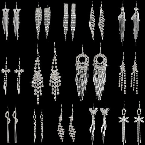 Nouveau argent couleur strass cristal boucles d'oreilles longues gland boucles d'oreilles pour les femmes mariée balançant Brincos bijoux de fête de mariage