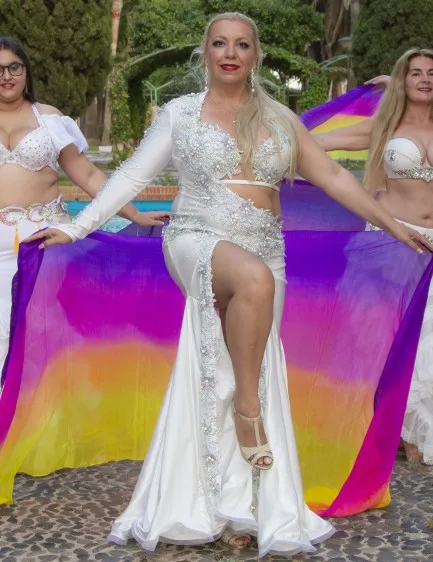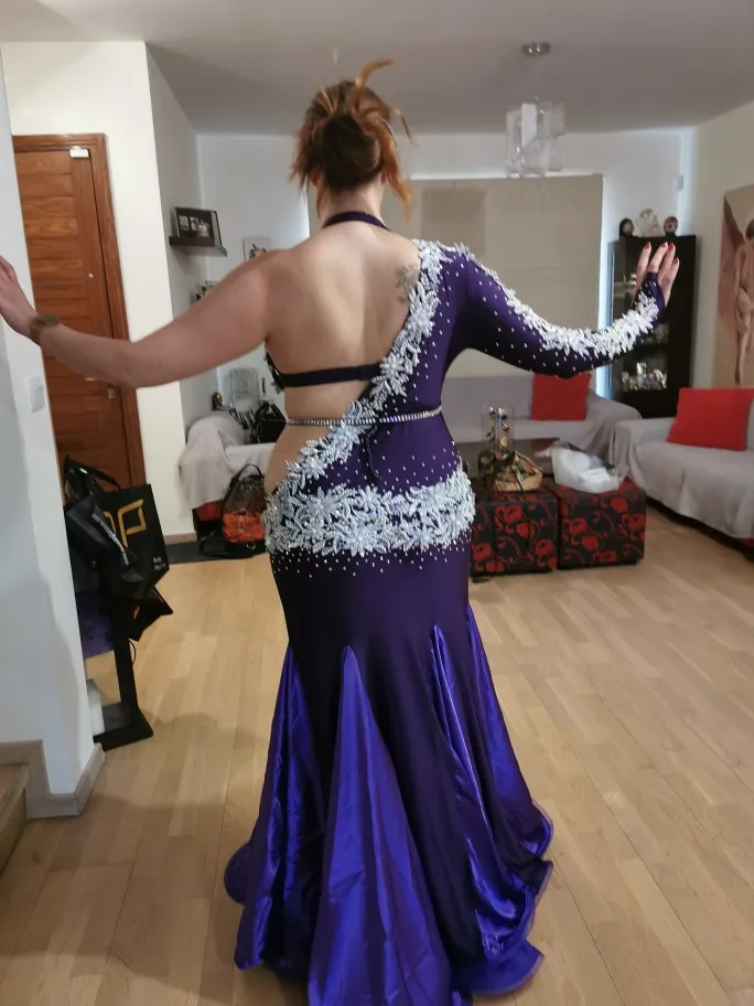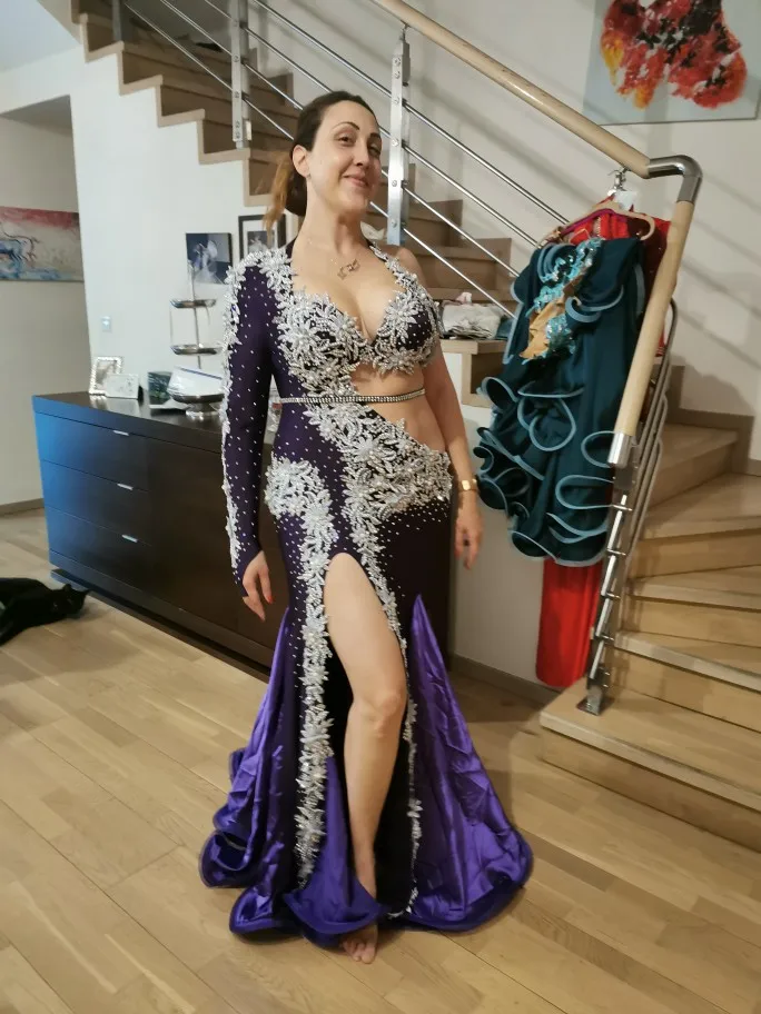 Nouveau costume de danse du ventre haut de gamme danse orientale siamois à manches longues couverture Robe de ventre longue jupe fée danse Robe de compétition