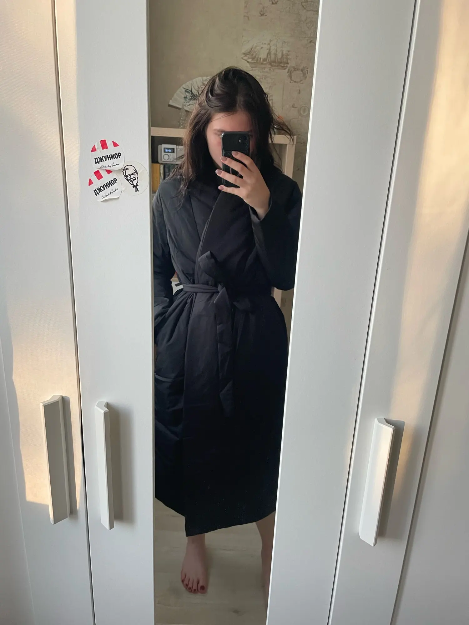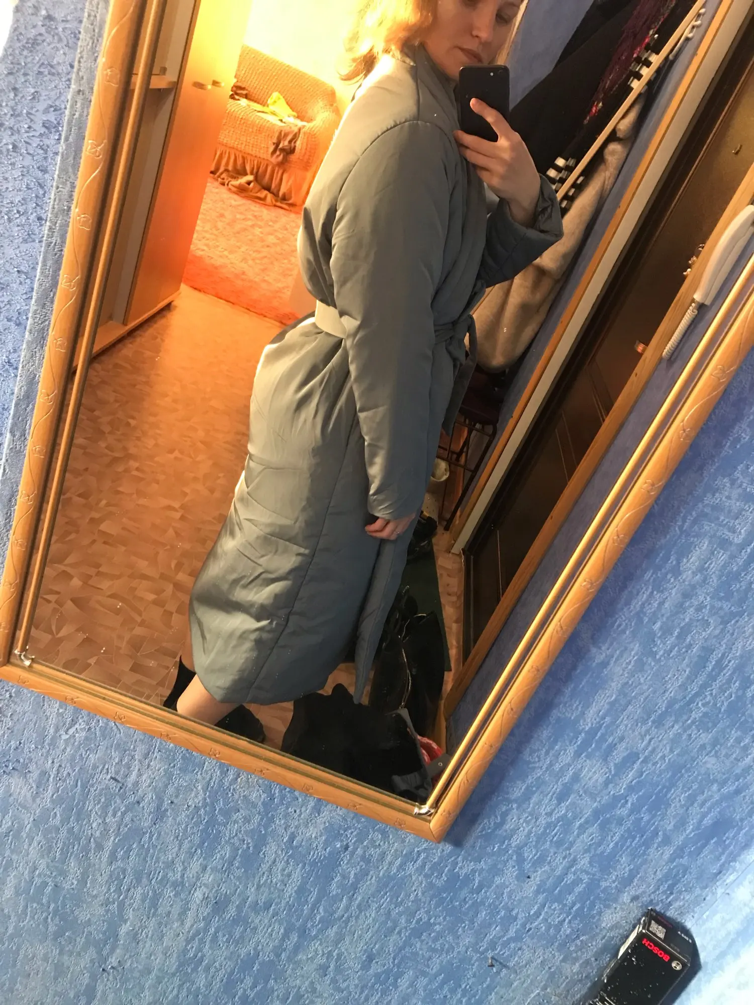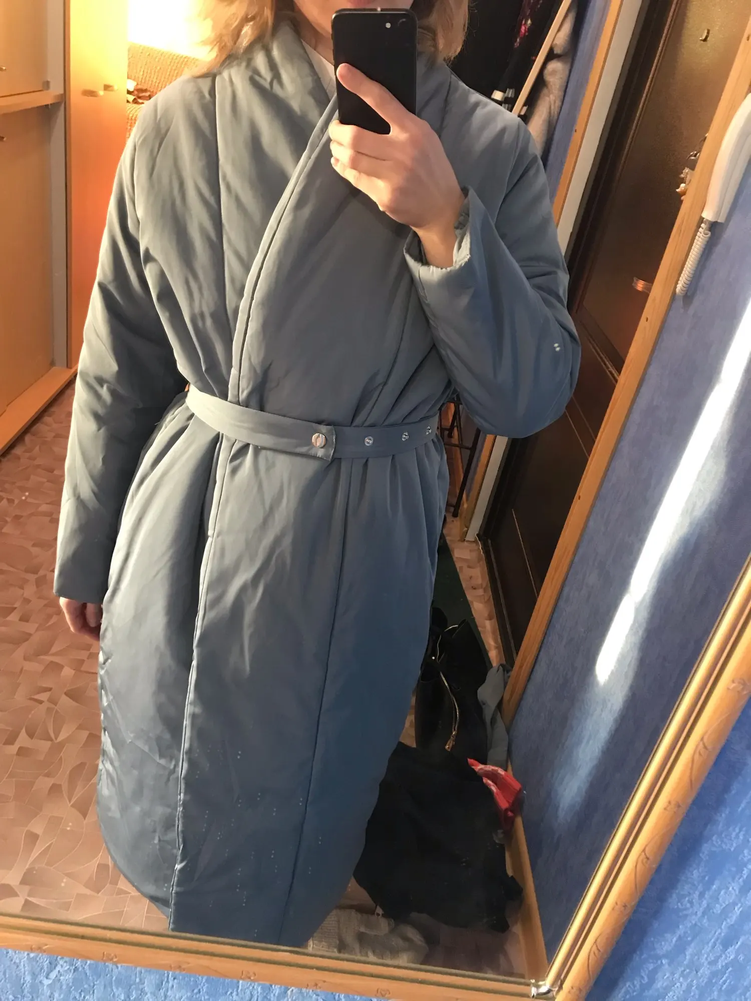 Warm coat. My parameters 174 cm. 88-62-90. Size m fits perfect!