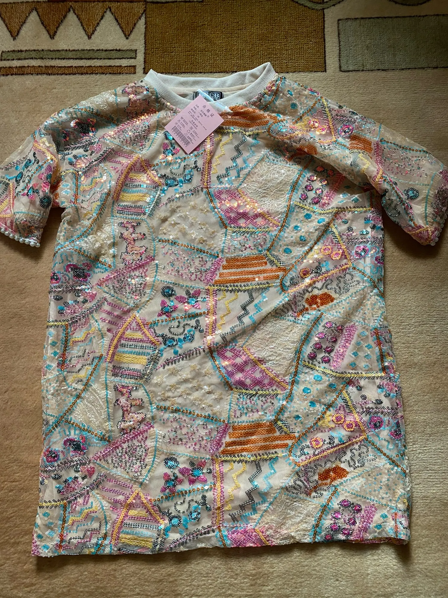 Nouveau européen Bling Bling femmes longues T-shirts femmes Chic dame paillettes T-shirts Femme broderie t-shirts hauts dame paillettes T-shirts