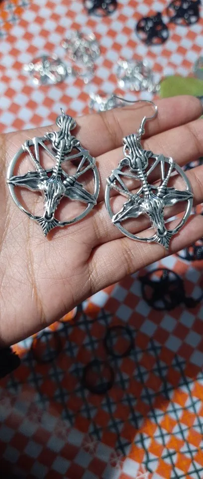 Nouveau mode Glamour rétro femmes pentagramme Pan dieu crâne tête de chèvre pendentif boucles d'oreilles gothique sorcière bijoux