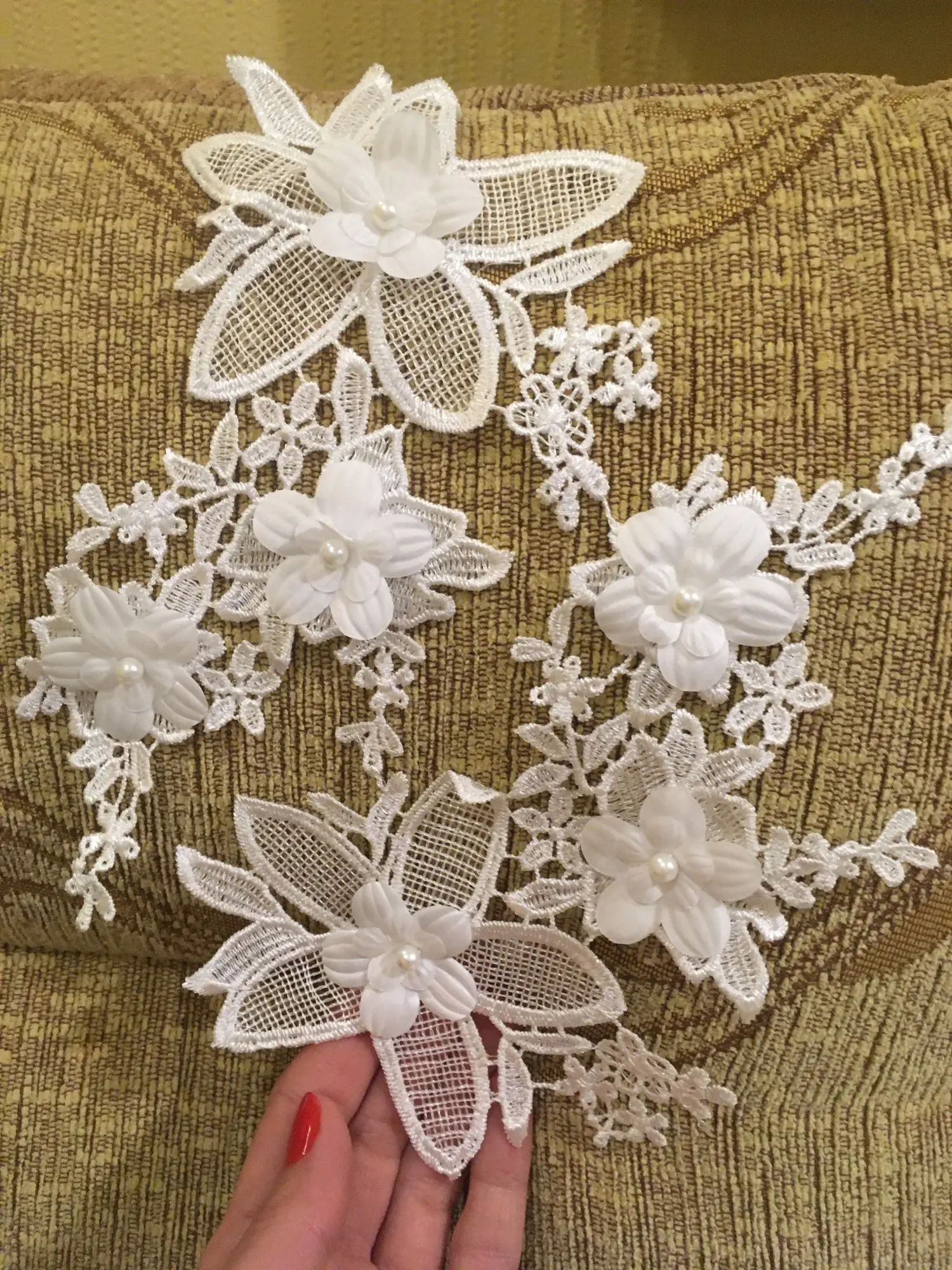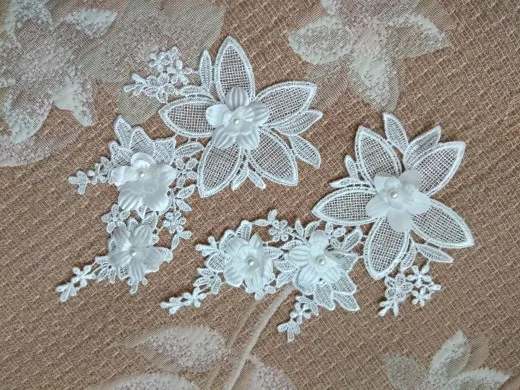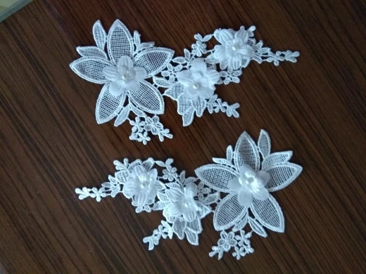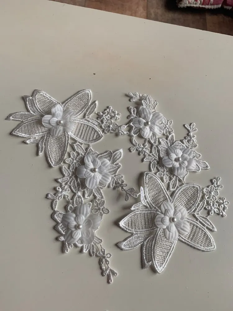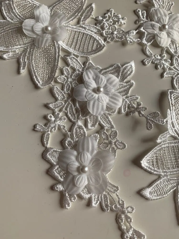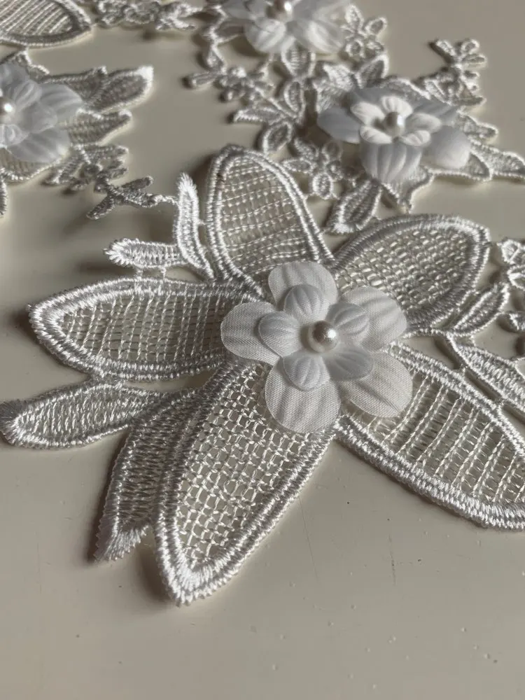 Nouveau style blanc Floral Applique perle Décoré BRICOLAGE Dentelle Col Tissu À Coudre Applique Fournitures une paire pour vente YL554