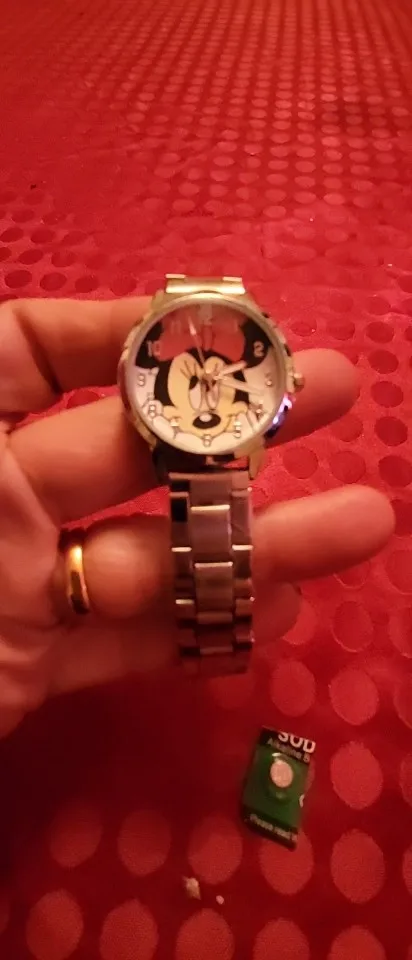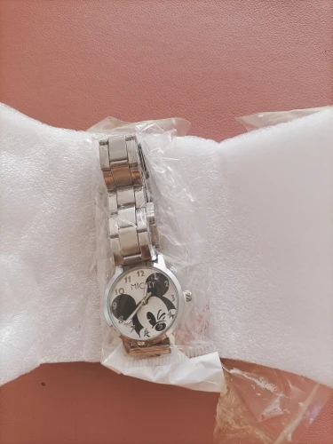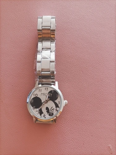 Nouveau type de montre Mickey Mouse or argent avec ceinture en acier mode pour les élèves du primaire et du secondaire