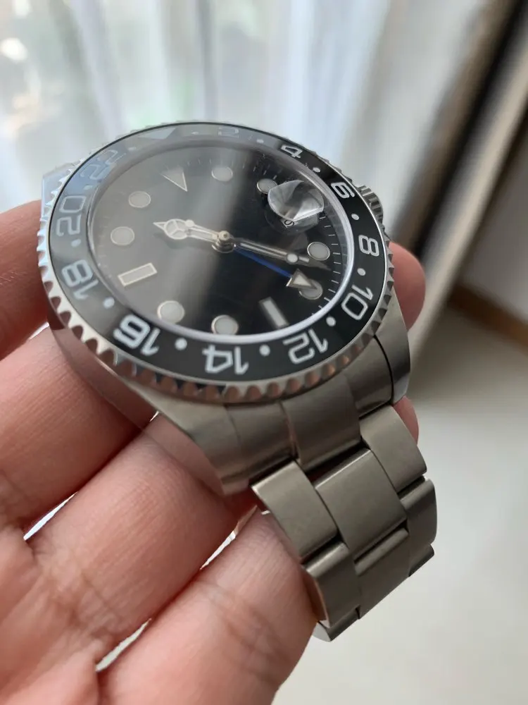 Nouveauté 43mm Bliger stérile cadran saphir verre Super lumineux pas de logo haut de gamme marque de luxe GMT mouvement automatique montre pour hommes