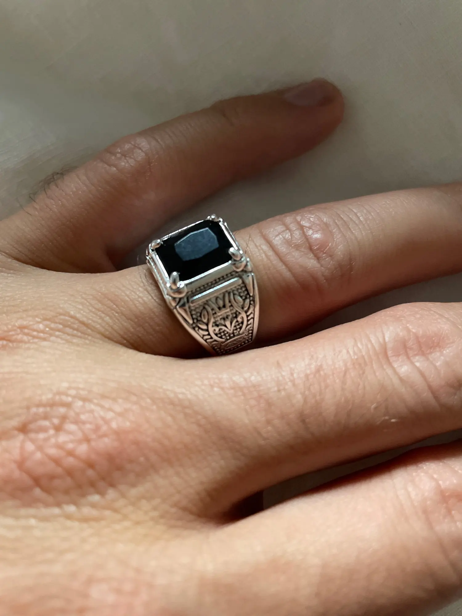 Nouveauté 925 argent Sterling rétro noir cristal hommes anneau Original bijoux pour homme cadeau d'anniversaire jamais fondu pas cher