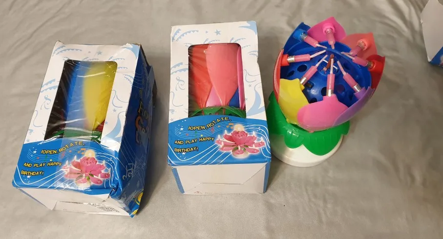 Nouveauté Lotus fleur bougie anniversaire gâteau bougies Double couche gâteau Topper décoration rotative pour anniversaire fête de mariage