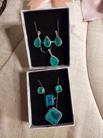 Nouveauté luxe 925 en argent Sterling Paraiba Tourmaline pierres précieuses boucles d'oreilles/pendentif/collier/anneau ensembles de bijoux de mariage en gros