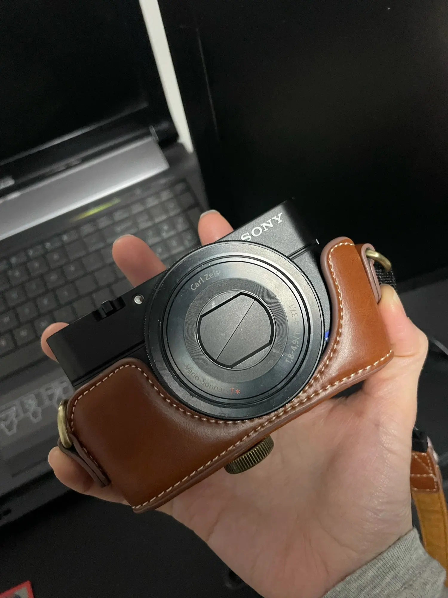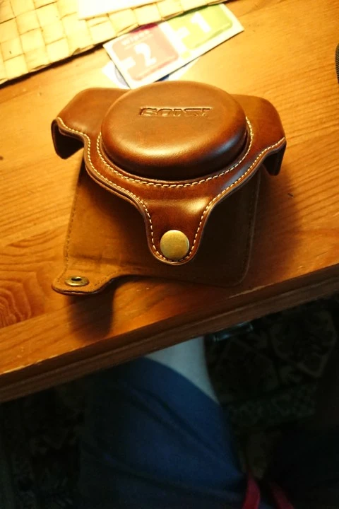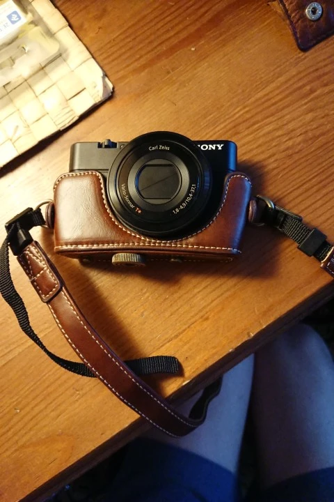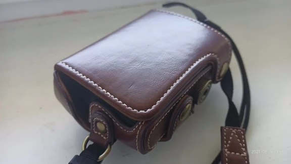 Sony RX100 Mk5a fits perfectly. Leather is syntetic but looks good.