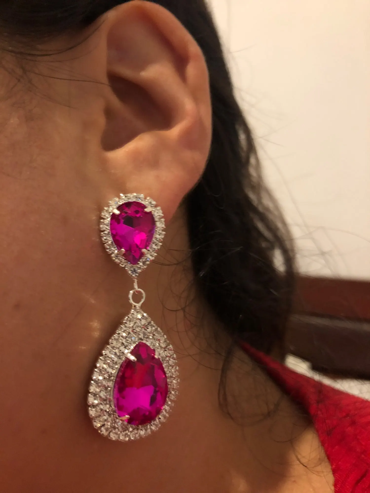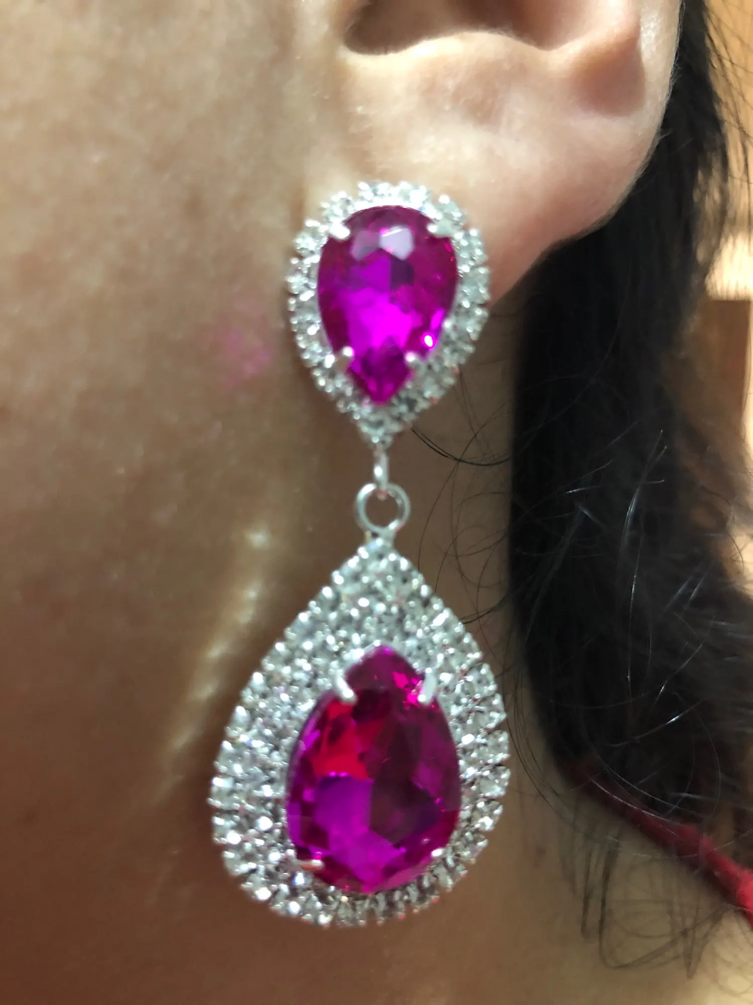 Nouvelle boucle d'oreille en strass fushia dame or argent vert/clair/jaune/rouge/bleu royal boucle d'oreille en cristal de luxe en pierre colorée