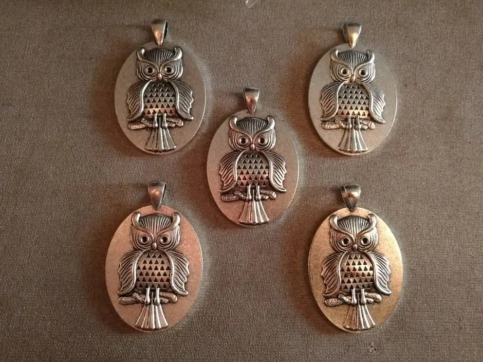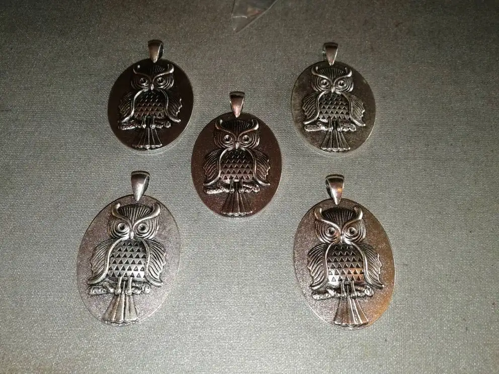 Nouvelle mode 5 pièces 30x40mm taille intérieure Bronze Antique et Antique argent plaqué hibou Cabochon réglage de la Base pendentif à breloques