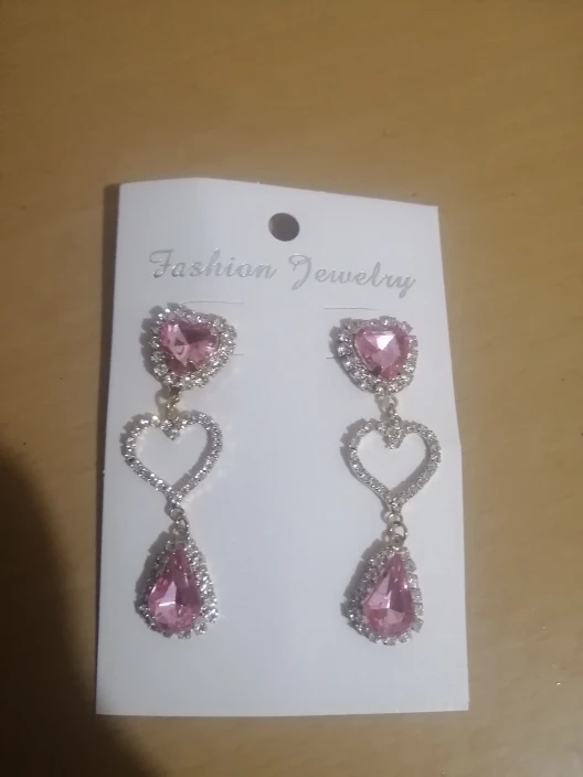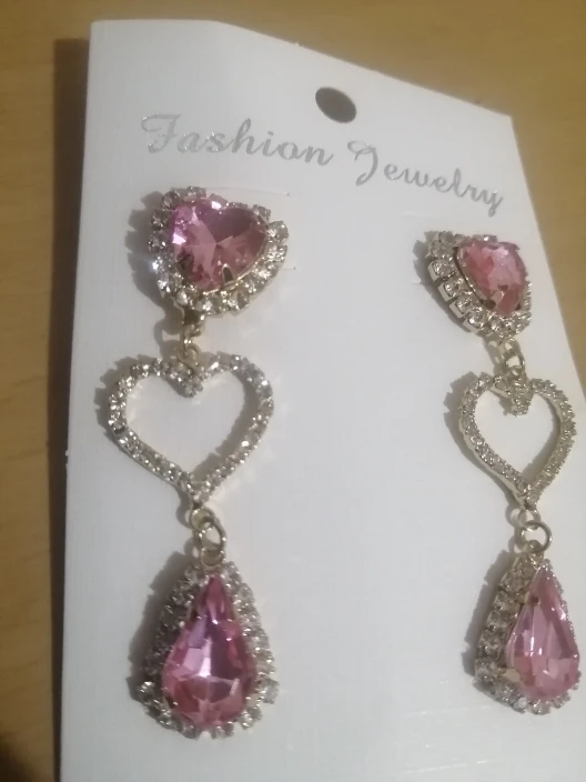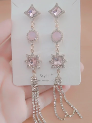 Rhinestone Love Heart Tassel Earrings