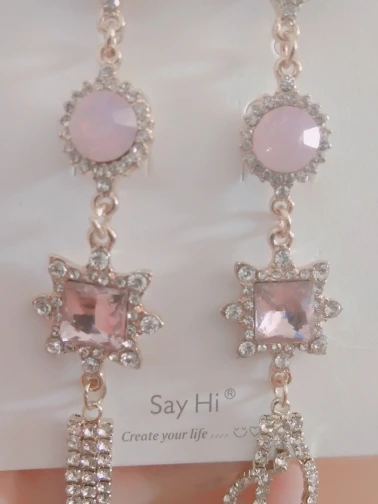 Nouvelle mode de luxe rose brillant strass Long nœud papillon gland boucles d'oreilles Style Baroque coréen femmes Pendientes bijoux