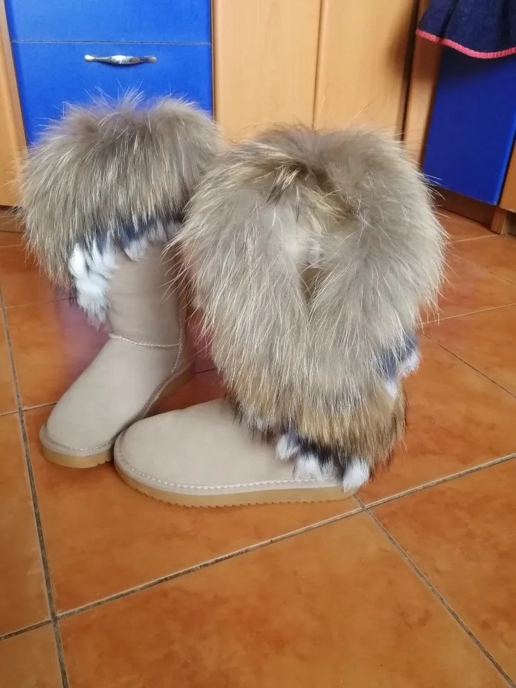 Nouvelle mode grande fourrure de renard naturel bottes de neige en cuir de vache véritable femmes bottes hautes hiver bottes longues fourrure de lapin glands chaussures antidérapantes