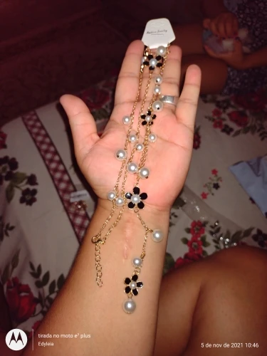 Nouvelle mode longue imitation perle gland cinq feuilles fleur chandail chaîne pour femmes fille accessoires bijoux en gros