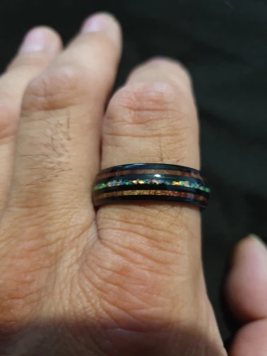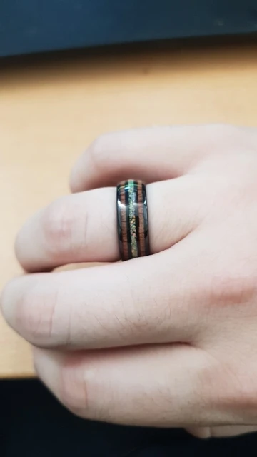 Nuncad Largeur 8mm Dôme Noir Acacia Bois Opale Anneau de carbure de tungstène hommes engagés anneaux de mariage pour les amateurs T097R