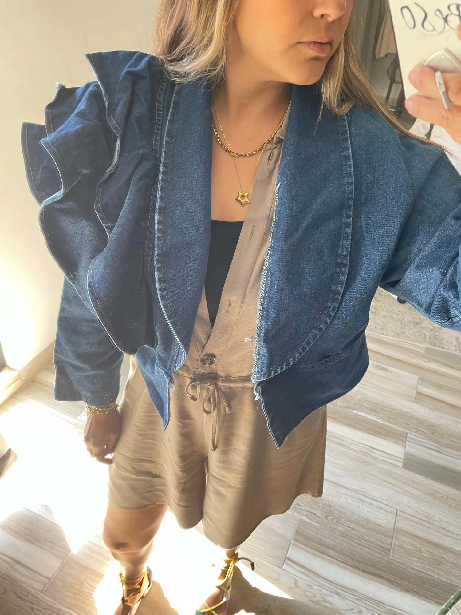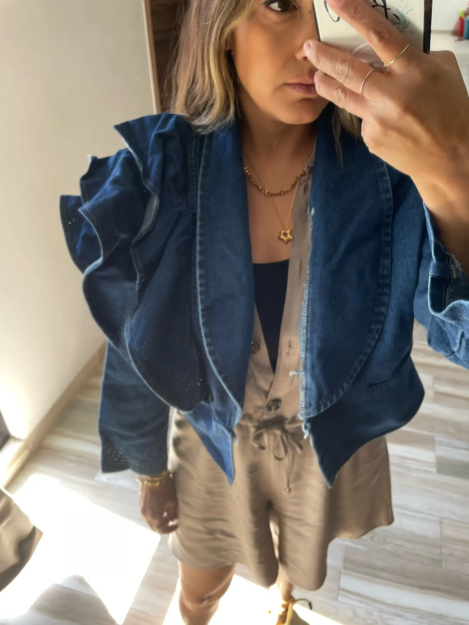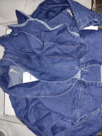 OCEANLOVE – veste en jean à volants pour femme, haut court avec col en V, couleur unie, style coréen, collection printemps-automne 2022, vêtements Vintage