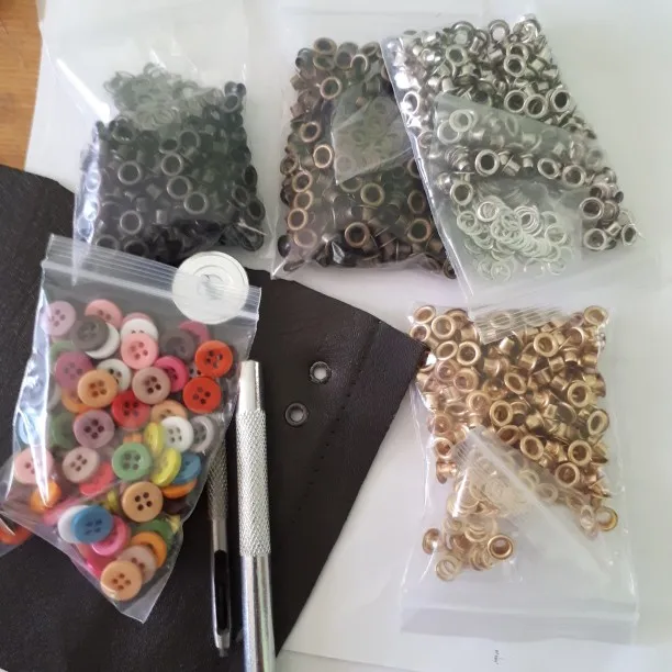 Œillets en laiton 4 couleurs (200 ensembles chacun) + 3 outils pour chaussures, sacs, vêtements, ceinture, chapeau, accessoires artisanaux en cuir faits à la main, bricolage