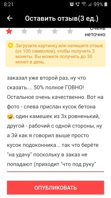17% d'acheteurs ne sont pas satisfaits des produits du vendeur.