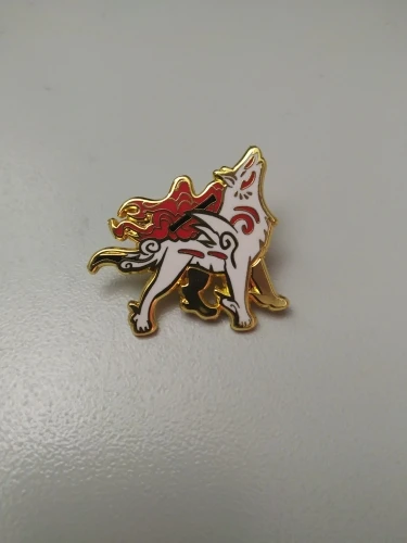 Okamis Amaterasu dur émail broche Unique dessins animé beau blanc loup broche revers sac à dos épingles bijoux jeu vidéo Fans cadeau