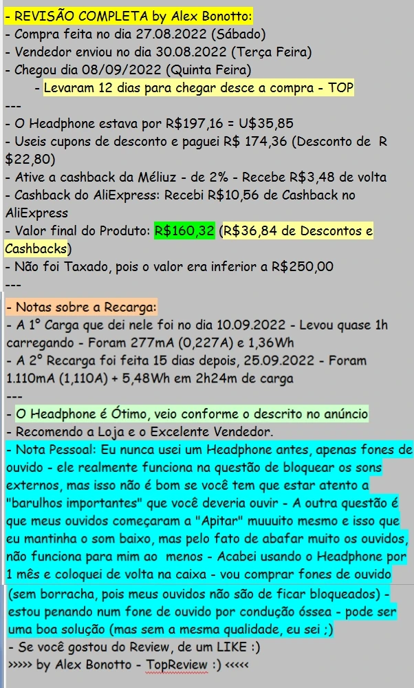 Évaluation Aliexpress :