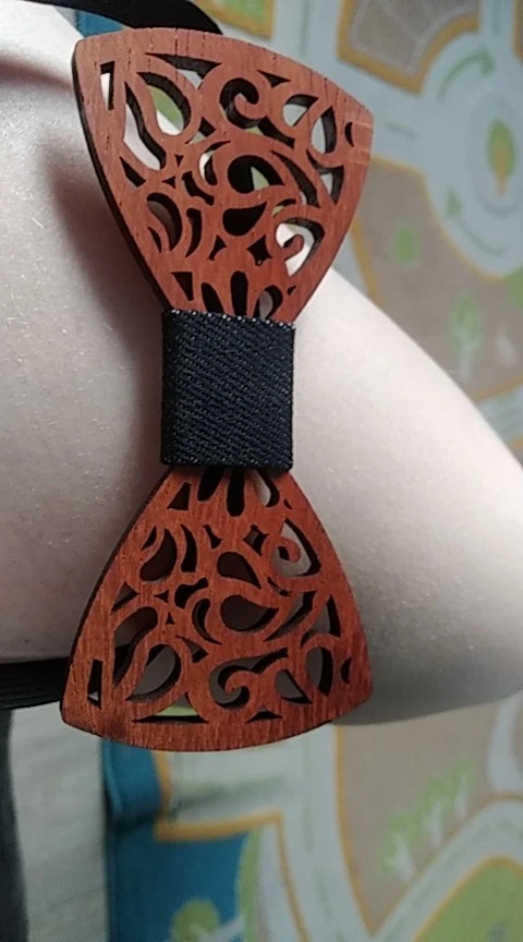 Paisley-nœud papillon en bois rouge | Flambant neuf pour hommes, motif Floral découpé, ajouré, mode nouveauté