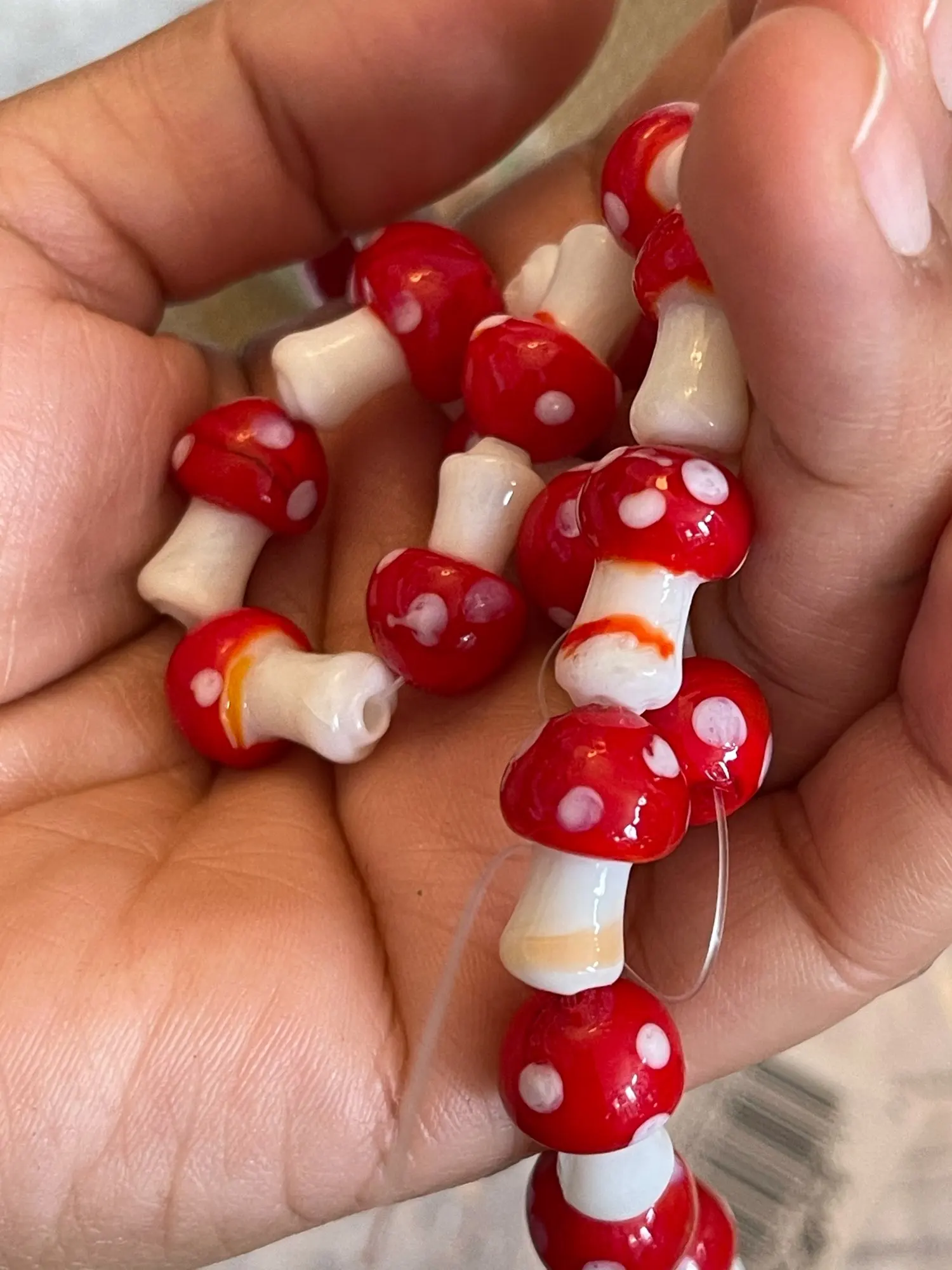 Pandahall – 1 brin de perles en forme de champignon, fait à la main, pour collier de boucle d'oreille, accessoires de bijouterie, DIY, rouge/rose