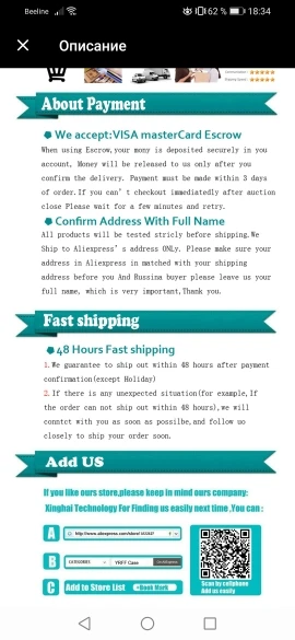 Évaluation Aliexpress :