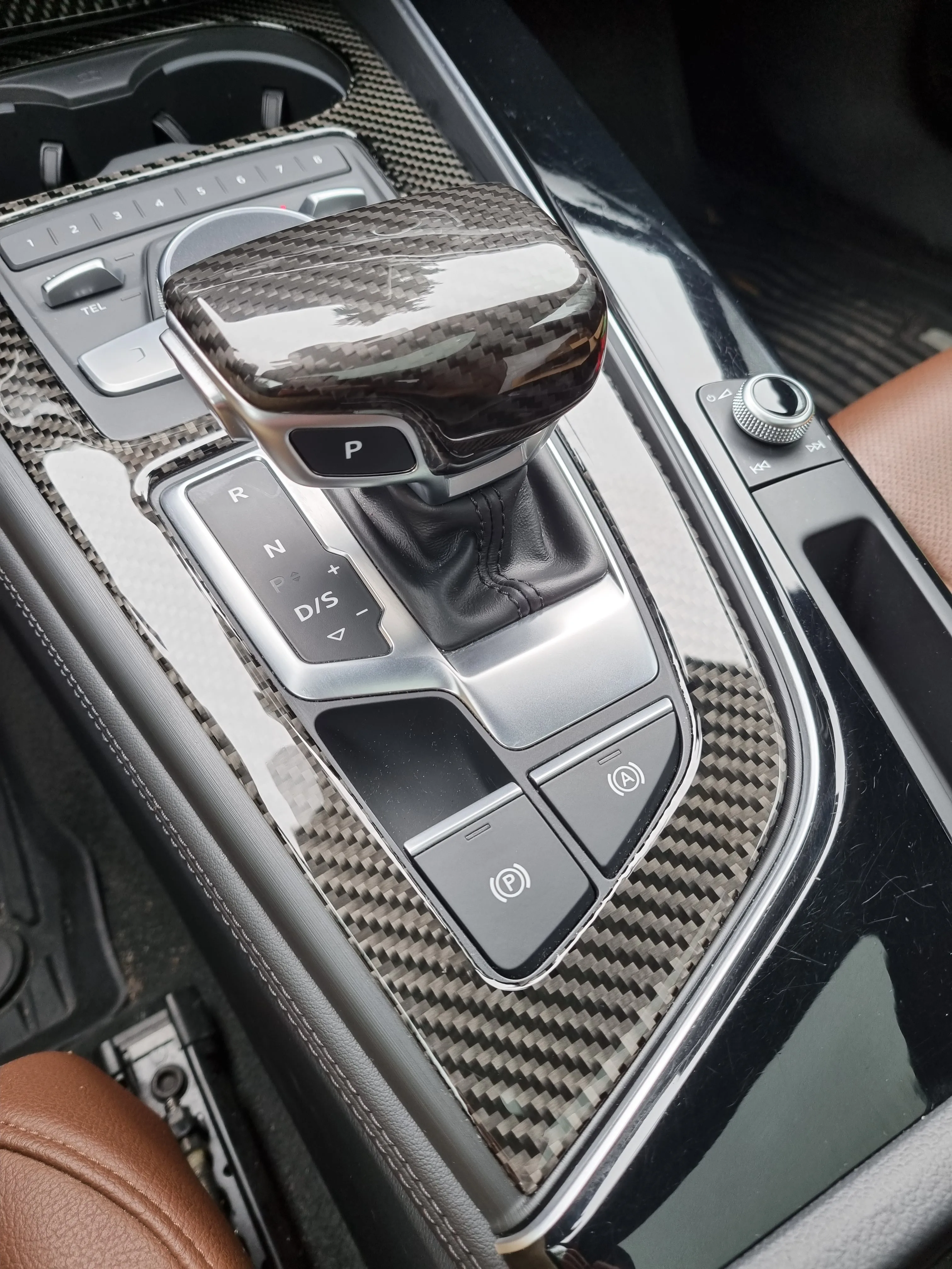 Panneau de commande de vitesse en Fiber de carbone, autocollants de garniture, décalcomanies de couverture pour Audi A4 A5 2017-2022, décoration automatique