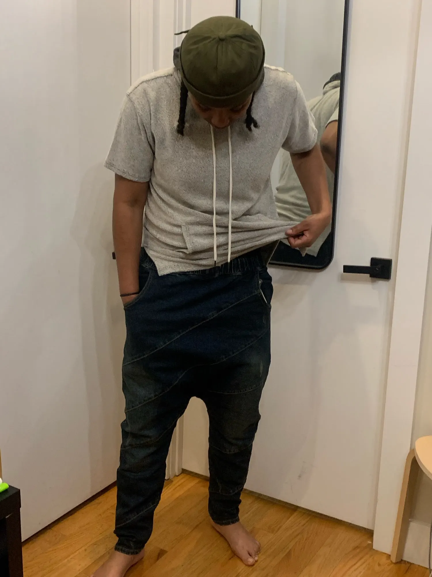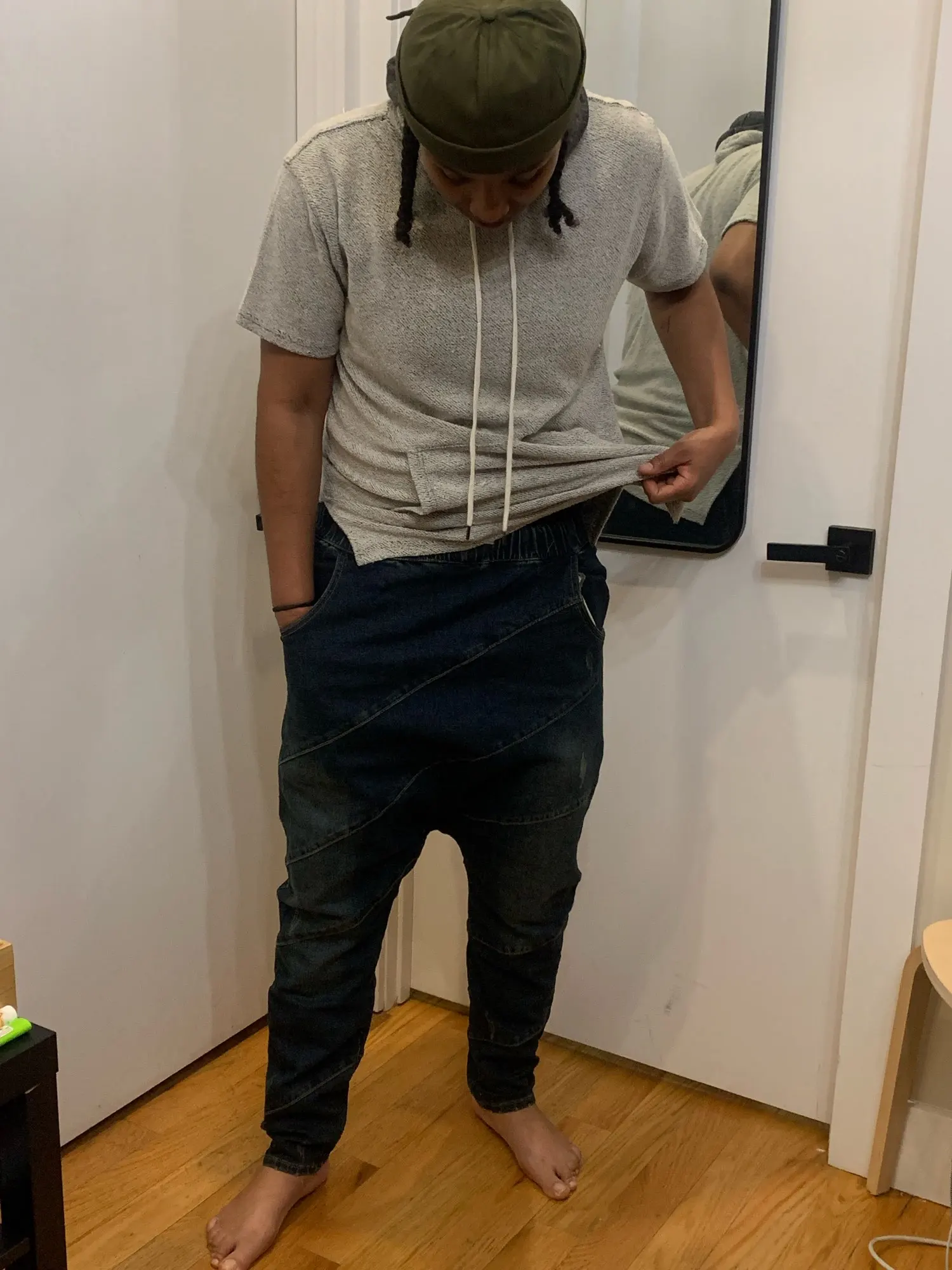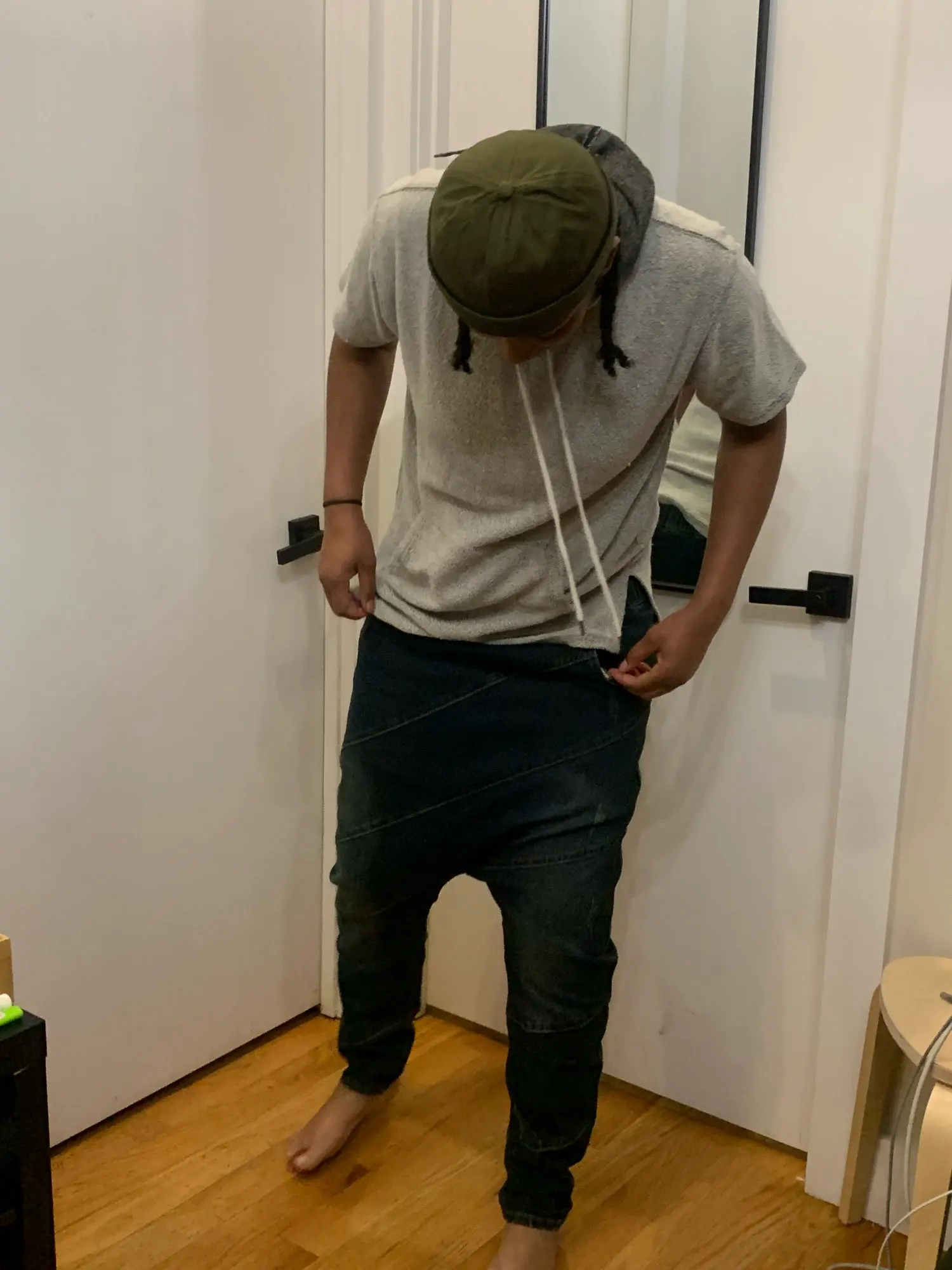Pantalon sarouel en Denim pour hommes, pantalon ample, bas, goutte, entrejambe, Hip Hop, danse de rue, cordon de serrage, grande taille, pour jogging A60301