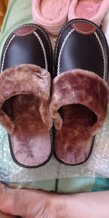 Pantoufles épaisses imperméables en cuir pour hommes, chaussures de chambre à coucher et en velours pour chambre à coucher, pour la maison, pour l'hiver