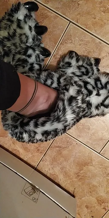 Pantoufles léopard blanc pour femmes, pantoufles en fourrure de pattes d'animaux, chaussures classiques au design girsl, 2022