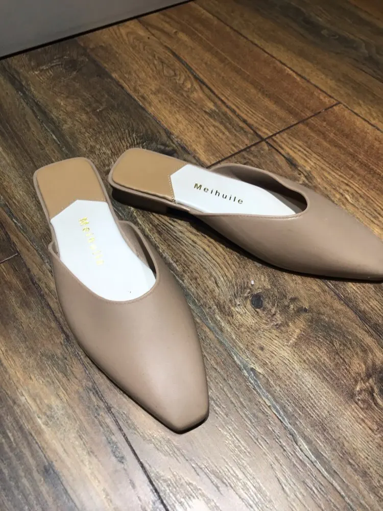 Pantoufles pour femmes couleur bonbon, bureau et carrière chaussures plates Mules à bout carré, chaussures printemps et été